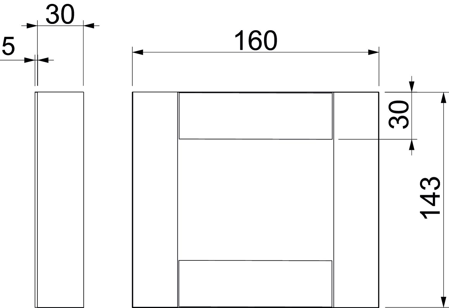 Classification EI − installation duct 60 Colour Grey Dimension 100x80 Dimension A 30 mm Dimension B 160 mm Dimension H 143 mm Dimension L 30 mm Height 143 mm Jacketing Without Length 30 mm Material Fibreglass lightweight concrete Material of the insulation Glass-fibre lightweight concrete Version for Left/right Width 160 mm - All types