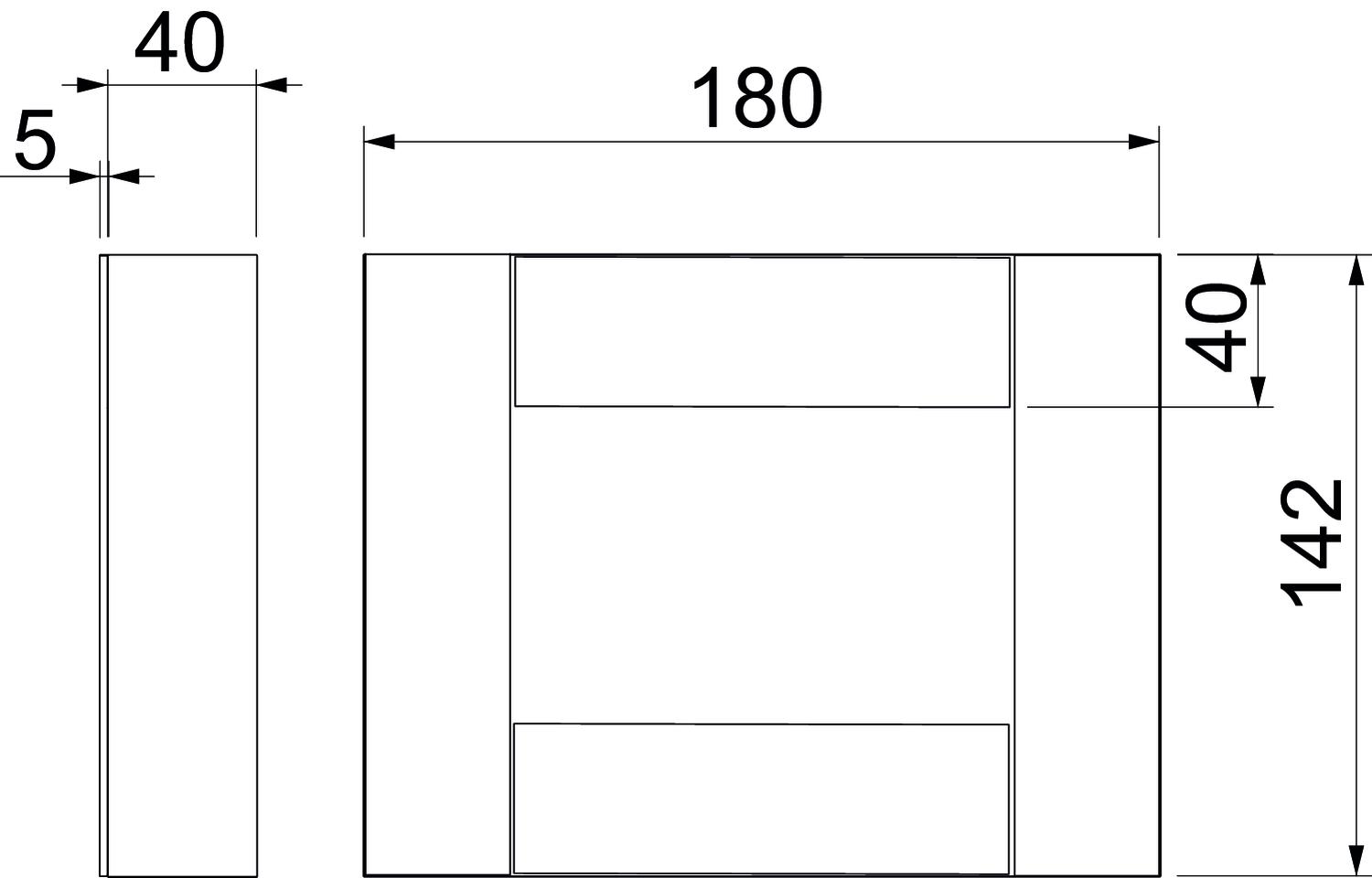 Classification EI − installation duct 90 Colour Grey Dimension 100x80 Dimension A 40 mm Dimension B 180 mm Dimension H 142 mm Dimension L 40 mm Height 142 mm Jacketing Without Length 40 mm Material Fibreglass lightweight concrete Material of the insulation Glass-fibre lightweight concrete Version for Left/right Width 180 mm - All types