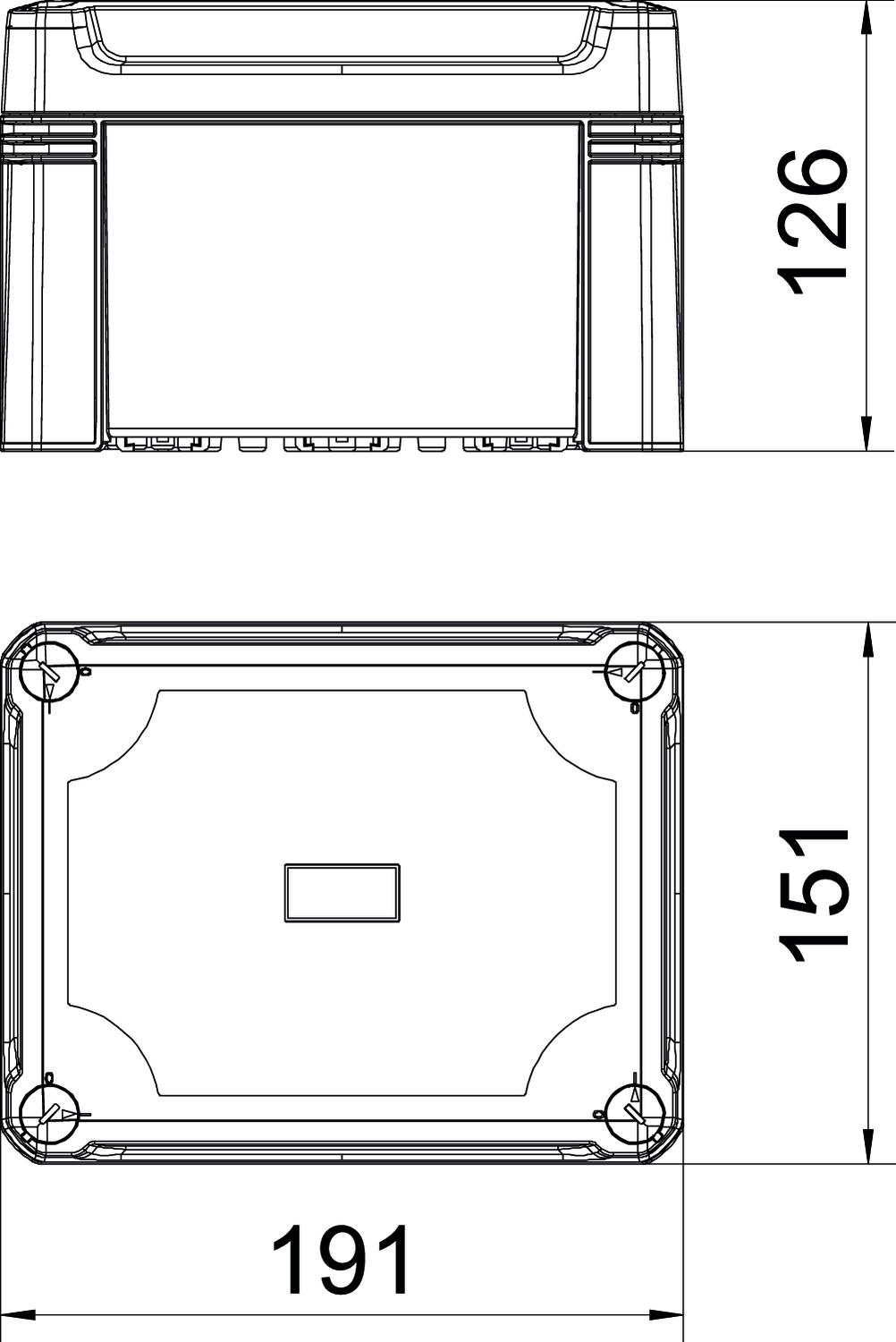 Clear internal dimensions 177x137x110 mm CO2 Footprint (GWP) Cradle-to-Gate 2,1992 kg CO2e / 1 Piece Colour Light grey; RAL 7035 Cover fastening Screwed Dimension 190x150x125 Extension option no Height 126 mm Length 191 mm Material Polycarbonate Permitted temperature range, max. 60 °C Permitted temperature range, min. -5 °C Protection rating IP67 Protection rating IK code IK09 Shape Square Suitable for outdoor use yes Weatherproof yes Width 151 mm with lid yes - All types