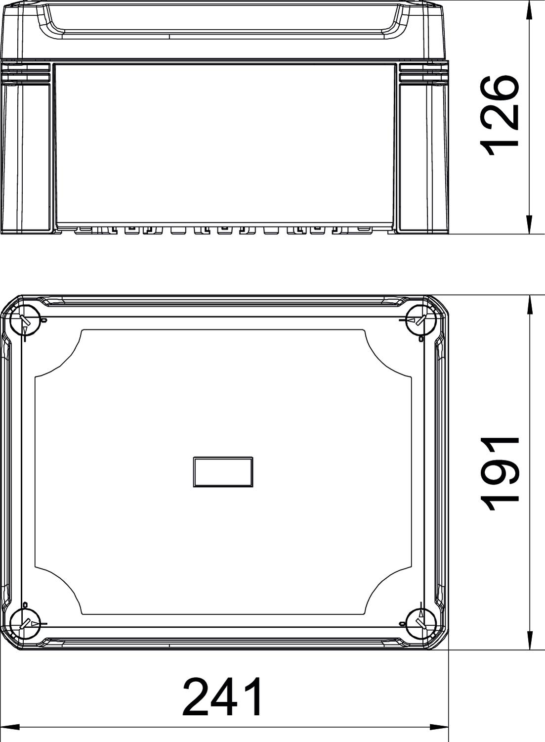 Clear internal dimensions 227x177x110 mm CO2 Footprint (GWP) Cradle-to-Gate 3,0226 kg CO2e / 1 Piece Colour Light grey; RAL 7035 Cover fastening Screwed Dimension 240x191x125 Extension option no Height 126 mm Length 241 mm Material Polycarbonate Permitted temperature range, max. 60 °C Permitted temperature range, min. -5 °C Protection rating IP67 Protection rating IK code IK09 Shape Rectangular Suitable for outdoor use yes Weatherproof yes Width 191 mm with lid yes - All types