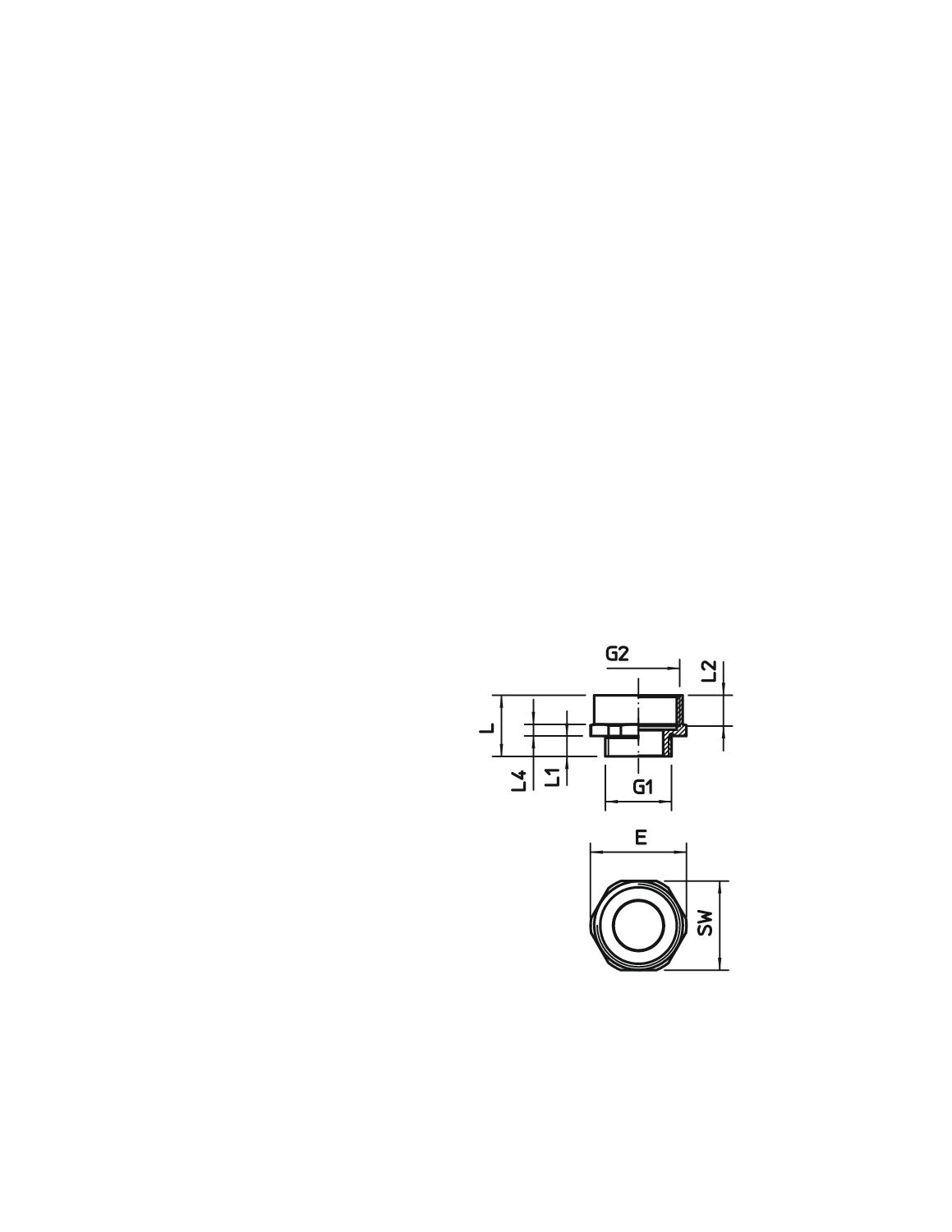 CO2 Footprint (GWP) Cradle-to-Gate 0,0709 kg CO2e / 1 Piece Dimension M25-M32 Dimension D 20,8 mm Dimension E 35,8 mm Dimension L 20,7 mm Dimension L1 7,4 mm Dimension L2 8 mm Dimension L4 4 mm explosion-proof no Material Brass Nickel-plated yes Surface Nickel-plated Thread dimension, metric, external 25 Thread dimension, metric, internal 32 Thread type: External thread Metric Thread type: Internal thread Metric WAF 34 - All types