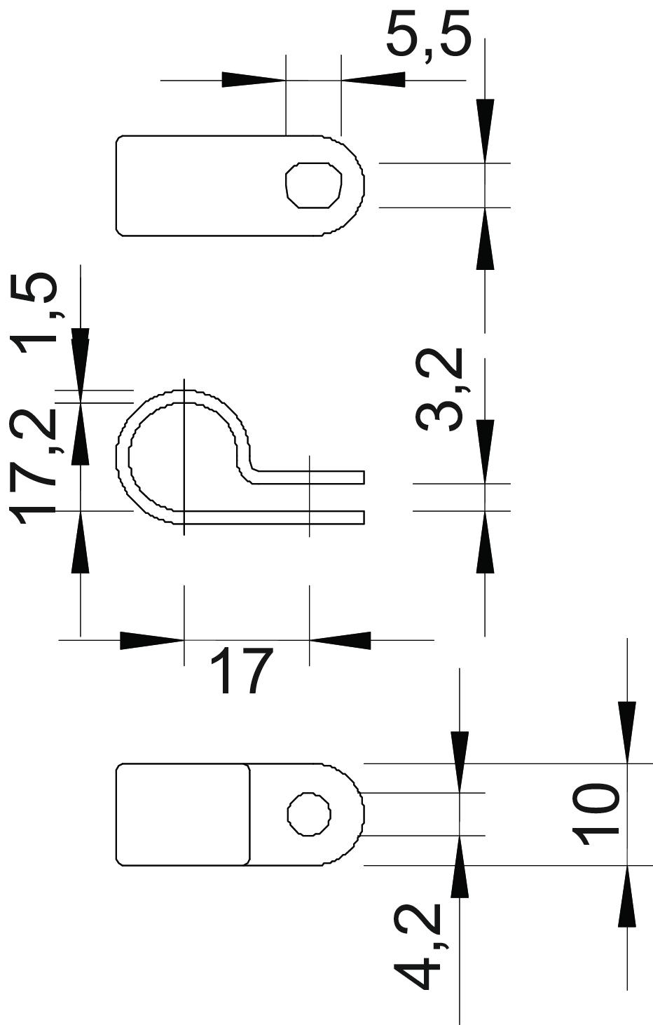 CO2 Footprint (GWP) Cradle-to-Gate 0,0065 kg CO2e / 1 Piece Colour Light grey; RAL 7035 Dimension 17,5mm Dimension d 17,2 mm Dimension e 17 mm Dimension s 1,5 mm Dimension x 3,2 mm Fastening type Screw hole For diameter 17,5 Halogen-free yes Material Polyamide Nominal diameter 17,5 mm Number of cables/pipes 1 Plastic-covered no Suitable in fire protection area no UV-resistant no Version for Closed - All types