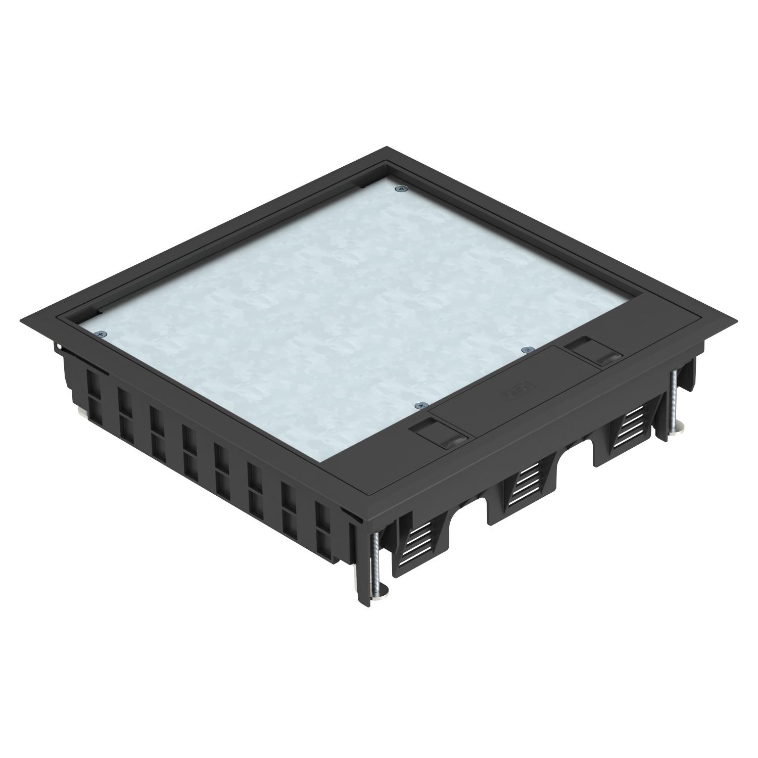 Approvals VDE Cable outlet version Swivellable cord outlet Clamping range D, max. 76 mm Clamping range D, min. 8 mm CO2 Footprint (GWP) Cradle-to-Gate 5,8682 kg CO2e / 1 Piece Colour Graphite black; RAL 9011 Device support to accept mounting boxes yes Dimension 264x264x67 Dimension h 73 mm Floor care Dry Floor covering protection frame yes Floor covering thickness 5 mm Floor covering thickness max. 10 mm Floor height, min. 73 mm Frame version Carpet protection frame Heavy-duty version no Height 67 mm Installation depth 73 mm Installation system type UT4 Length of external dimensions 264 mm Length of installation dimensions 244 mm Material Polyamide Nominal size for device installation units 9 Number of installable devices 12 Number of mounting boxes 3 Opening mechanism Locking slider Protection rating (IP) when unused IP40 Protection rating (IP) when used IP20 Protection rating IK code IK08 Seal installation option no Suitable for cavity floor installation yes Suitable for raised floor installation yes Suitable for screed-covered underfloor ducts yes Suitable for screed-flush closed underfloor ducts no Suitable for underfloor ducts yes Suitable for wet care no Version for Square Vertical load, large area to 5,000 N Vertical load, small area to 3,000 N Wide external dimensions 264 mm Wide installation dimensions 244 mm With floor covering recess yes - All types