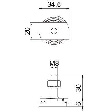 CO2 Footprint (GWP) Cradle-to-Gate 0,1432 kg CO2e / 1 Piece Dimension M8x30mm Dimension H 6 mm Dimension L 30 mm Height 20 mm Length 36 mm Material Steel Suitable for mounting rail yes Surface Zinc slat Thread M8x30 Thread metric 8 Torque 8 Nm Washer Ø 10 mm Width 35 mm - All types