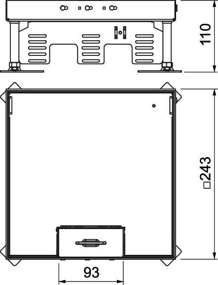 Approvals VDE Cable outlet version Swivellable cord outlet CO2 Footprint (GWP) Cradle-to-Gate 14,5135 kg CO2e / 1 Piece Decouplable no Device support to accept mounting boxes yes Dimension 243x243mm Dimension h 110 mm Floor care Dry Floor covering thickness 25 mm Floor height, max. 155 mm Floor height, min. 110 mm Heavy-duty version no Height-adjustment range, max. 155 mm Height-adjustment range, min. 110 mm Installation depth 110 mm Installation system type UT4 Length 243 mm Length of installation dimensions 244 mm Material Brass Nominal size 350 mm Nominal size for device installation units 9 Number of cable outlets 1 Number of installable devices 12 Number of mounting boxes 3 Protection rating (IP) when unused IP40 Protection rating (IP) when used IP20 Protection rating IK code IK10 Suitable for cavity floor installation yes Suitable for raised floor installation yes Version for Square Vertical load, large area to 5,000 N Vertical load, small area to 3,000 N Wide installation dimensions 244 mm Width 243 mm - All types