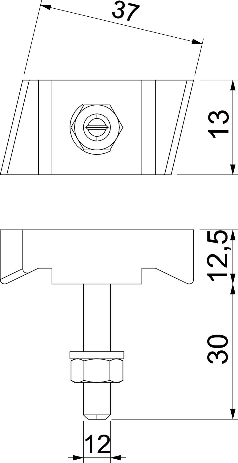 CO2 Footprint (GWP) Cradle-to-Gate 0,2296 kg CO2e / 1 Piece Dimension M12x30mm Height 10 mm Length 43,3 mm Material Steel Suitable for mounting rail yes Surface Zinc slat Thread M12x30mm Thread metric 12 Width 13 mm - All types