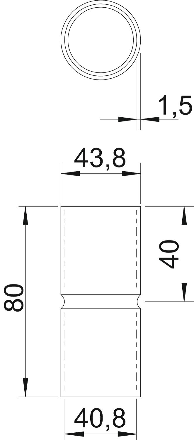 Brushed surface no CO2 Footprint (GWP) Cradle-to-Gate 0,4046 kg CO2e / 1 Piece Dimension Ø40mm Dimension d 40,8 mm Dimension D 43,8 mm Dimension l 40 mm Dimension L 80 mm Dimension m (mm) M40 Dimension t 1,5 mm for pipe diameter 40 mm Halogen-free yes Length 80 mm Material Steel Permitted temperature range, max. 400 °C Permitted temperature range, min. -45 °C Polished surface no Size 40 Surface Hot-dip galvanised Two-part no Version for Connector With inspection opening and lid no - All types