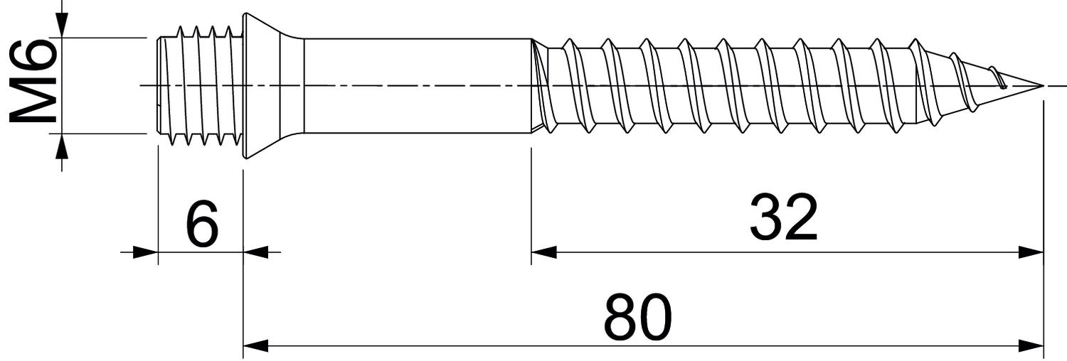 Colour zinc Dimension 145x105x90 Dimension D 6 mm Dimension G M6 mm Dimension L 80 mm Dimension L1 32 mm Hardened yes Head shape Countersunk head Length 80 mm Material Steel Screw system Miscellaneous Screw system Miscellaneous Shank diameter 6 mm Surface Electrogalvanized Thread length 32 mm Thread metric 6 Thread type Metric Two-compartment no - All types