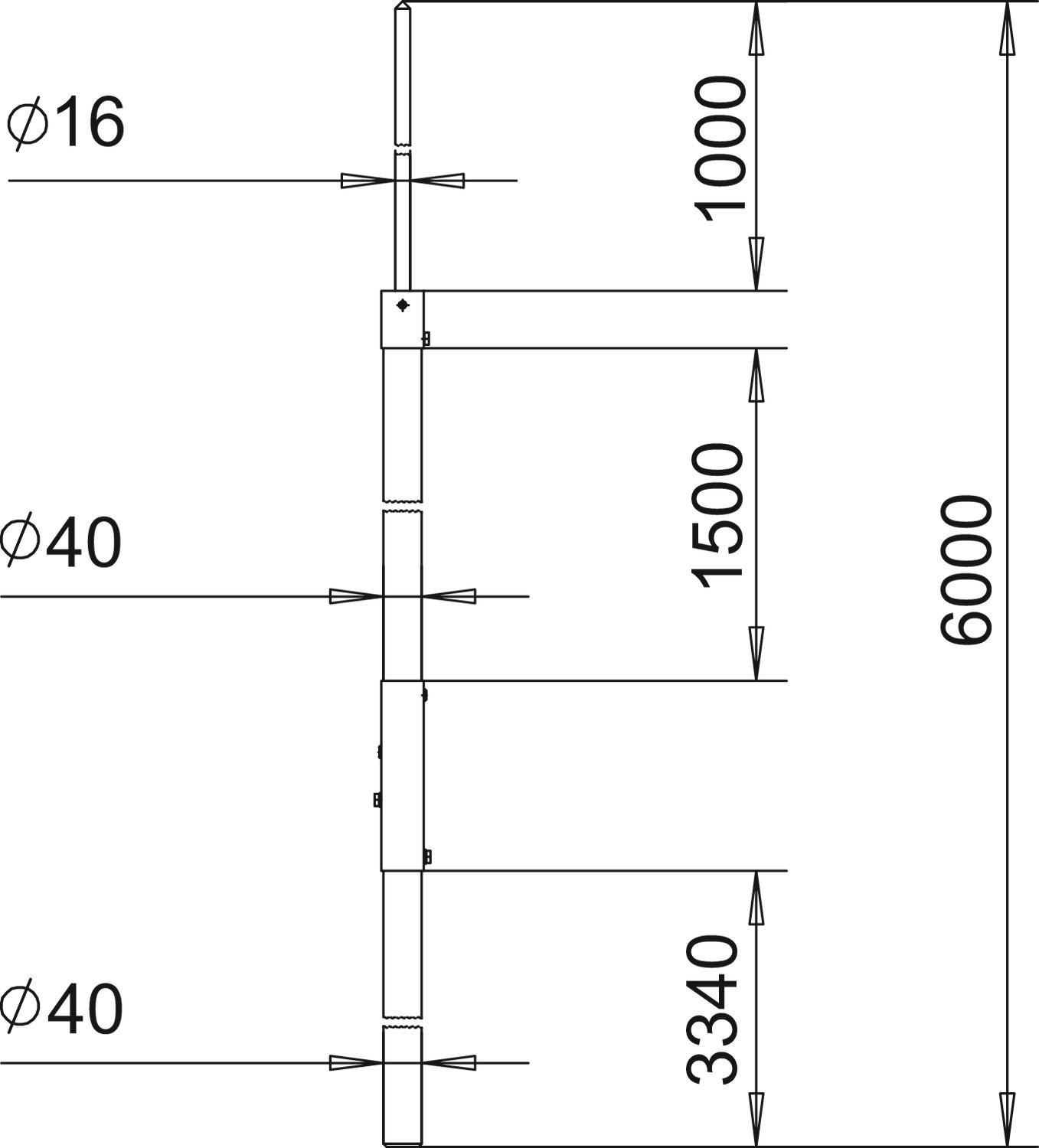 Colour Light grey Connection Round conductor Diameter 40 mm Dimension 6000mm Dimension A 3340 mm Dimension B 1000 mm Dimension d min. 40 mm Dimension H 1500 mm High voltage-resistant, insulated version yes Length 6000 mm Material Fibre-glass-reinforced plastic Version for Air-termination rod - All types