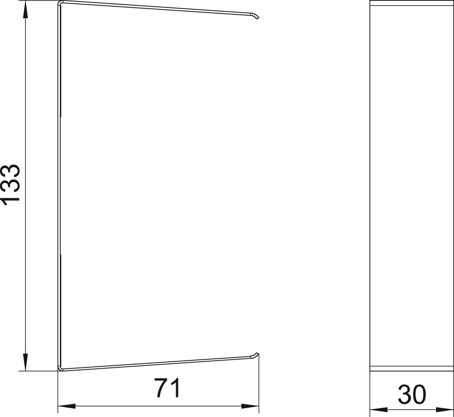 CO2 Footprint (GWP) Cradle-to-Gate 0,273 kg CO2e / 1 Piece Colour Pure white; RAL 9010 Cover width 76,5 mm Dimension 70x110x30mm Duct height, min. 70 mm Fastening type Self-adhesive for duct dimension 70x110 for duct width 110 mm for trunking height 70 mm Halogen-free yes Height 71 mm Length 30 mm Material Steel Permitted temperature range, max. 60 °C Permitted temperature range, min. -25 °C Protection rating IP30 Protection rating IK code IK10 Shape Universal Trunking depth 70 mm Version for Trunking cut cover Width 113 mm - All types