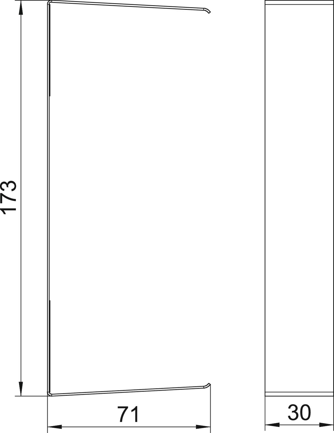 CO2 Footprint (GWP) Cradle-to-Gate 0,3029 kg CO2e / 1 Piece Colour Pure white; RAL 9010 Cover width 76,5 mm Dimension 70x170x30mm Duct height, min. 70 mm Fastening type Self-adhesive for duct dimension 70x170 for duct width 170 mm for trunking height 70 mm Halogen-free yes Height 71 mm Length 30 mm Material Steel Permitted temperature range, max. 60 °C Permitted temperature range, min. -25 °C Protection rating IP30 Protection rating IK code IK10 Shape Universal Trunking depth 70 mm Version for Trunking cut cover Width 173 mm - All types