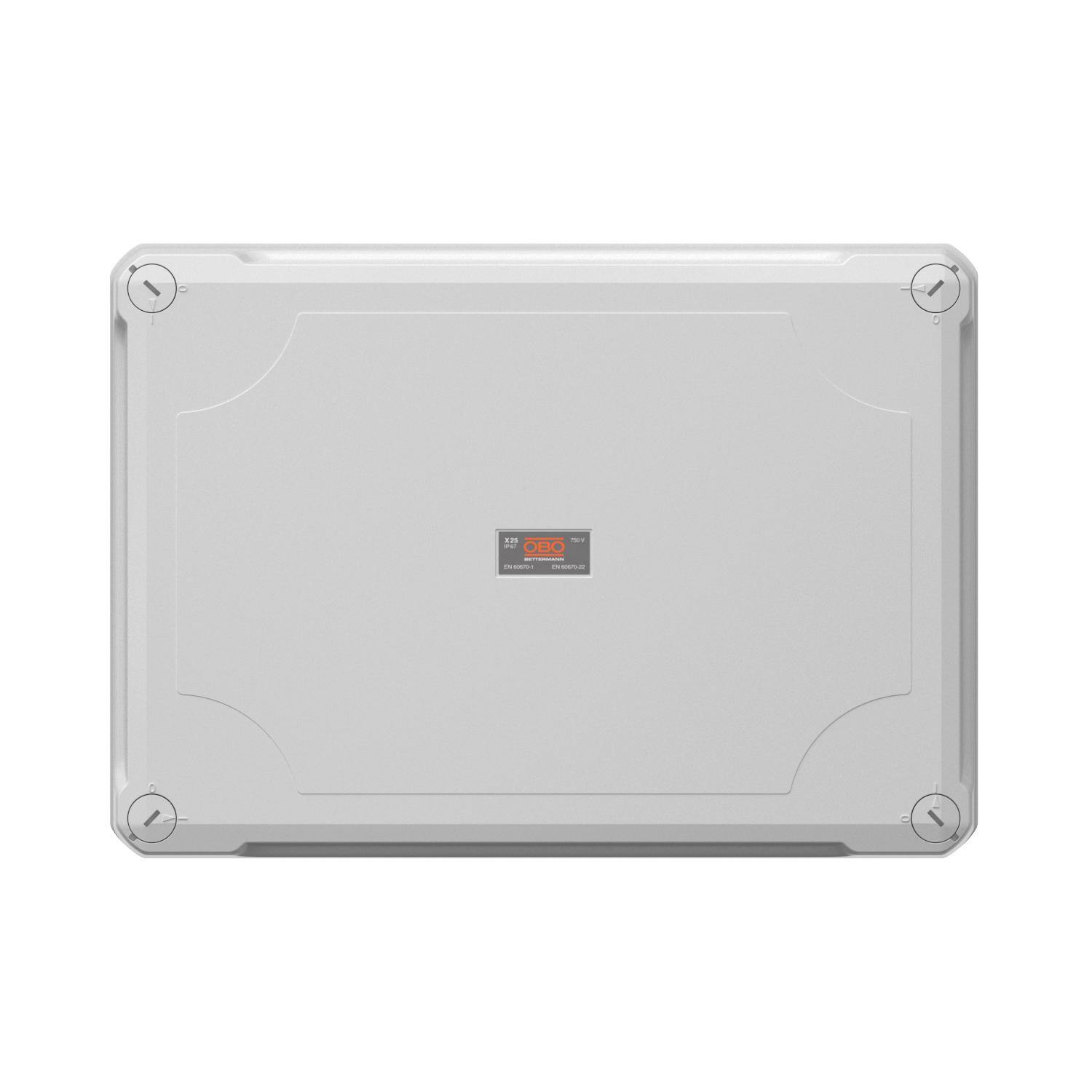 Product descriptionJunction box for the connection of cables and lines indoors and in outdoor areas. Rectangular design with knock-out entries. Suitable for wall and ceiling mounting with the option to fasten outside, inside or to mount via the corner domes. Particularly impact resistant with IK09. Cover with quick lock, sealable. Made from halogen-free and UV-resistant materials.