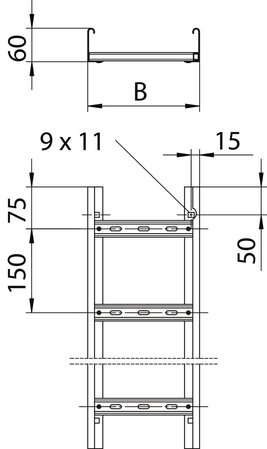 CO2 Footprint (GWP) Cradle-to-Gate 8,7271 kg CO2e / 1 Meter Colour zinc Dimension 60x300x6000 Dimension B 300 mm Fastening of rung Blind riveted Fire protection Maintenance of electrical function of standard support structure Height 60 mm Length 6000 mm Maintain electrical functions yes Material Steel Rail thickness 1,5 mm Rung distance 150 mm Rung slot dimension 17,00 Rustproof steel, pickled no Side perforation yes Side rail version Profile (open) Surface Strip galvanized Usable cross-section 14800 mm² Usable cross-section 148 cm² Version of the rungs Profile perforated Wide-span version no Width 300 mm - All types