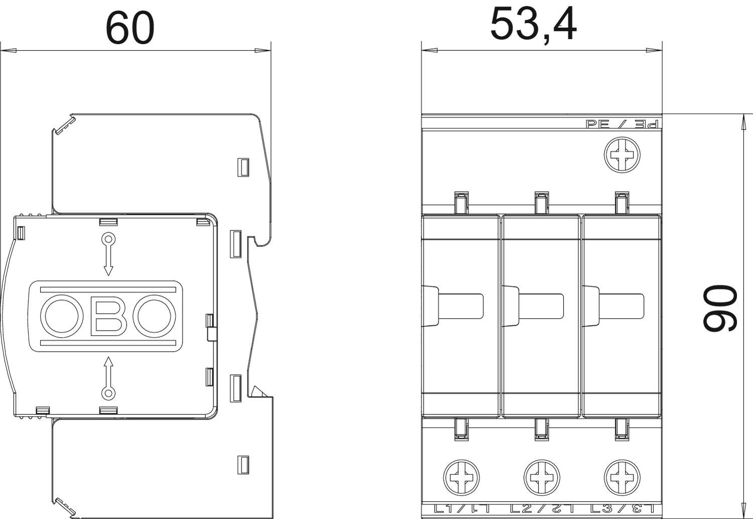 Arrester surge current (8/20 µs) [total] 90 kA Blow-out no CO2 Footprint (GWP) Cradle-to-Gate 1,3551 kg CO2e / 1 Piece Conductor cross-section, rigid (single-wire/multiwire), max. 35 mm² Conductor cross-section, rigid (single-wire/multiwire), min. 2,5 mm² DC network form no Dimension 280V Installation type DIN rail 35 mm Integrated back-up fuse no IT network form no Lightning protection zone LPZ 0→2 Lightning surge current (10/350 μs) 12,5 kA Lightning surge current (10/350) 37,5 kA Max. mains-side overcurrent protection 125 Maximum back-up fuse 125 A Maximum continuous voltage (N-PE) 255 V Maximum continuous voltage AC 280 V Maximum discharge current (8/20 μs) 50 kA Network form TN-C Nominal discharge current (8/20 µs) 30 kA Nominal discharge current (8/20 µs) [L-N] 30 kA Nominal voltage AC (50/60 Hz) 230 V Operating temperature, max. 80 °C Operating temperature, min. -40 °C Other network form no Permitted temperature range, max. 80 °C Permitted temperature range, min. -40 °C Pole number 3 Pole version 3 Protection level [L-N] ≤1,3 Protection rating IP20 Remote signalling yes Response time <25 ns Signalling on device Visual SPD to EN 61643-11 Type 1+2 SPD to IEC 61643-1 Class I+II TN network form yes TN-C network form yes TN-C-S network form no TN-S network form no TT network form no Version for 3-pole + FS - All types