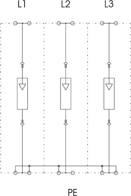 Arrester surge current (8/20 µs) [total] 150 kA Blow-out no CO2 Footprint (GWP) Cradle-to-Gate 6,3071 kg CO2e / 1 Piece Conductor cross-section, rigid (single-wire/multiwire), max. 50 mm² Conductor cross-section, rigid (single-wire/multiwire), min. 10 mm² Dimension 255V Explosion-tested version no Follow current quenching capacity (eff) [N-PE] 10 kA Height 69 mm Installation type DIN rail 35 mm Length 100 mm Lightning protection zone LPZ 0→1 Lightning surge current (10/350 μs) 50 kA Lightning surge current (10/350) 150 kA Max. mains-side overcurrent protection 500 Maximum back-up fuse 500 A Maximum continuous voltage AC 255 V Network form Other Nominal discharge current (8/20 µs) 50 kA Nominal voltage AC (50/60 Hz) 230 V Operating temperature, max. 85 °C Operating temperature, min. -40 °C Permitted temperature range, max. 85 °C Permitted temperature range, min. -40 °C Pole version 3 Protection rating IP20 Remote signalling no Response time <100 ns Short-circuit resistance 25 kA Short-circuit resistance for max. mains-side overcurrent protection 25 kA Signalling on device None SPD to EN 61643-11 Type 1 SPD to IEC 61643-1 Class I Test class, type 1 yes Version for 3-pole Width 105 mm - All types