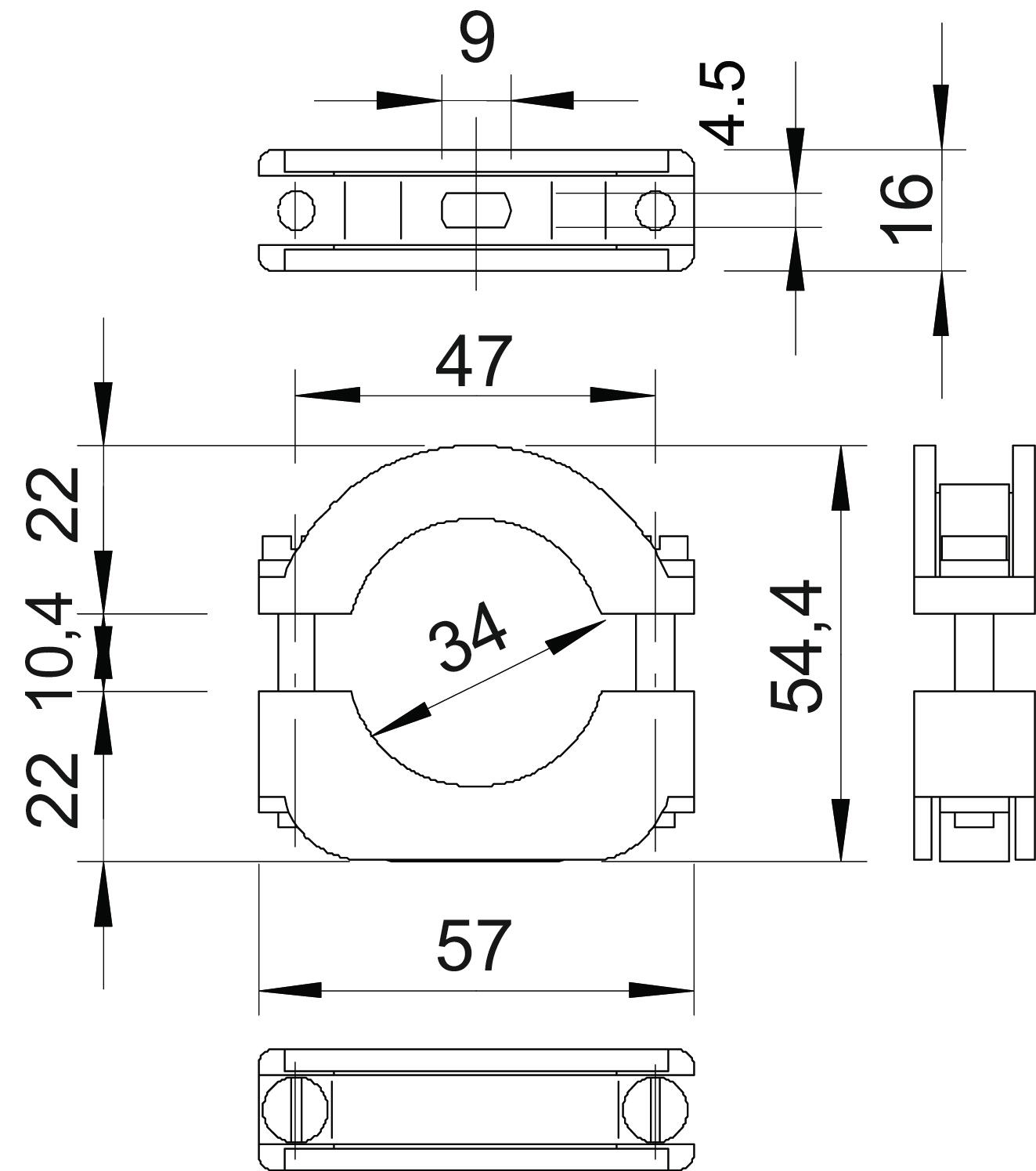 Bolt M5 x 35 Clamping range D, max. 34 mm Clamping range D, min. 24 mm CO2 Footprint (GWP) Cradle-to-Gate 0,1298 kg CO2e / 1 Piece Colour Light grey; RAL 7035 Dimension 24-34mm Dimension A 57 mm Dimension B 47 mm Dimension b 16 mm Dimension D 34 mm Dimension H 54,4 mm Dimension Ho (mm) 22 Dimension Hu (mm) 22 Dimension L 9 mm Fastening type Screw hole Halogen-free yes Material Polystyrene Number of cables/pipes 1 Plastic-covered no Suitable in fire protection area no UV-resistant no Version for Closed - All types