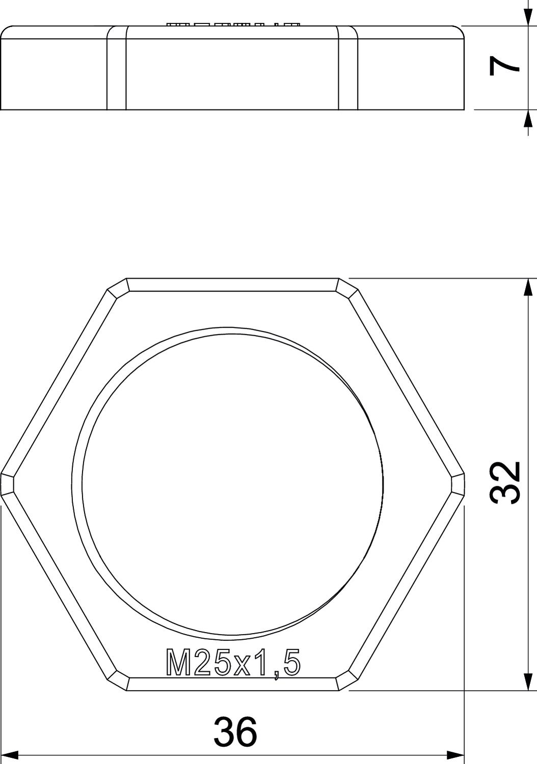 CO2 Footprint (GWP) Cradle-to-Gate 0,0145 kg CO2e / 1 Piece Colour Light grey; RAL 7035 Dimension M25 Dimension E 36 mm Dimension L 6,5 mm Fibre-glass reinforced no Halogen-free yes Impact-resistant no Material Polyamide Nominal thread size metric/PG 25 Thread M25 x 1,5 Thread type Metric WAF 32 - All types