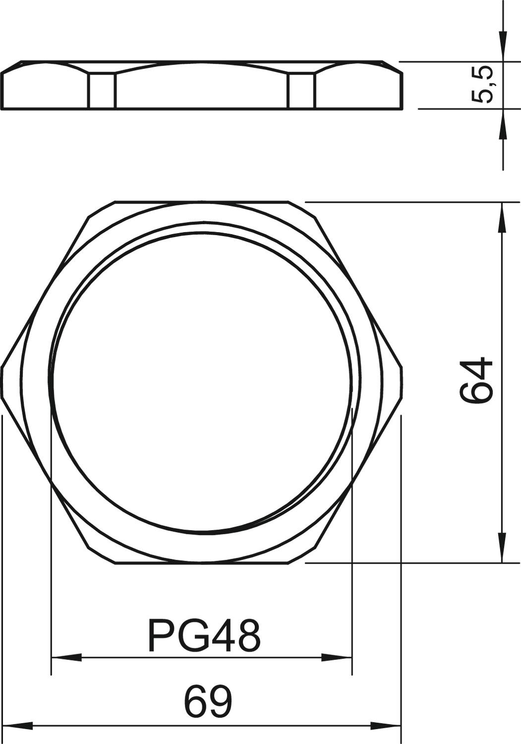 CO2 Footprint (GWP) Cradle-to-Gate 0,1119 kg CO2e / 1 Piece Dimension PG48 Dimension E 69 mm Dimension L 5,5 mm Fibre-glass reinforced no Halogen-free no Impact-resistant no Material Brass Nominal thread size metric/PG 48 Surface Nickel-plated Thread Pg 48 Thread type PG WAF 64 - All types