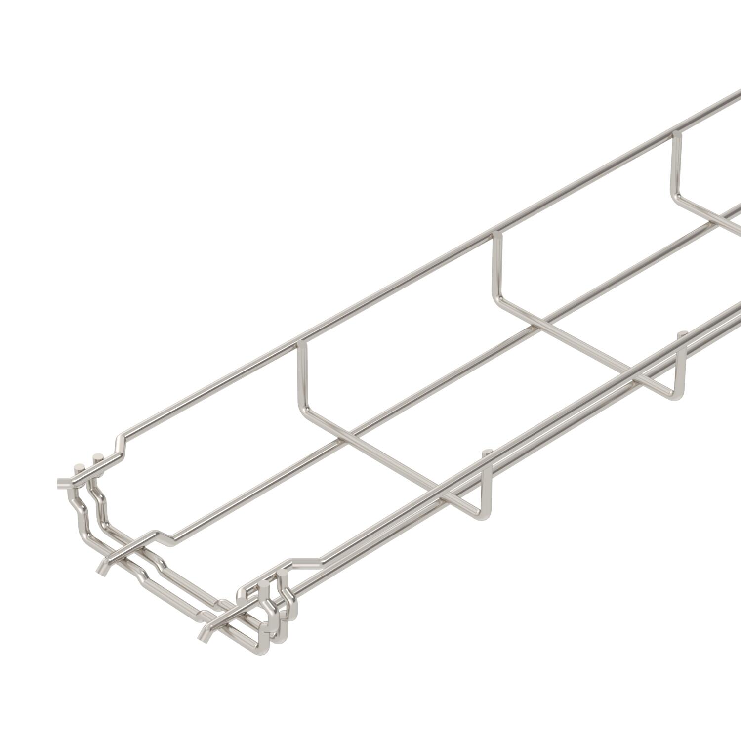 No additional connection components are required for the mesh cable tray, it is simply interlocked. The grid width is 50 x 100 mm (exception: GRM 35/50 = 20 x 100 mm).