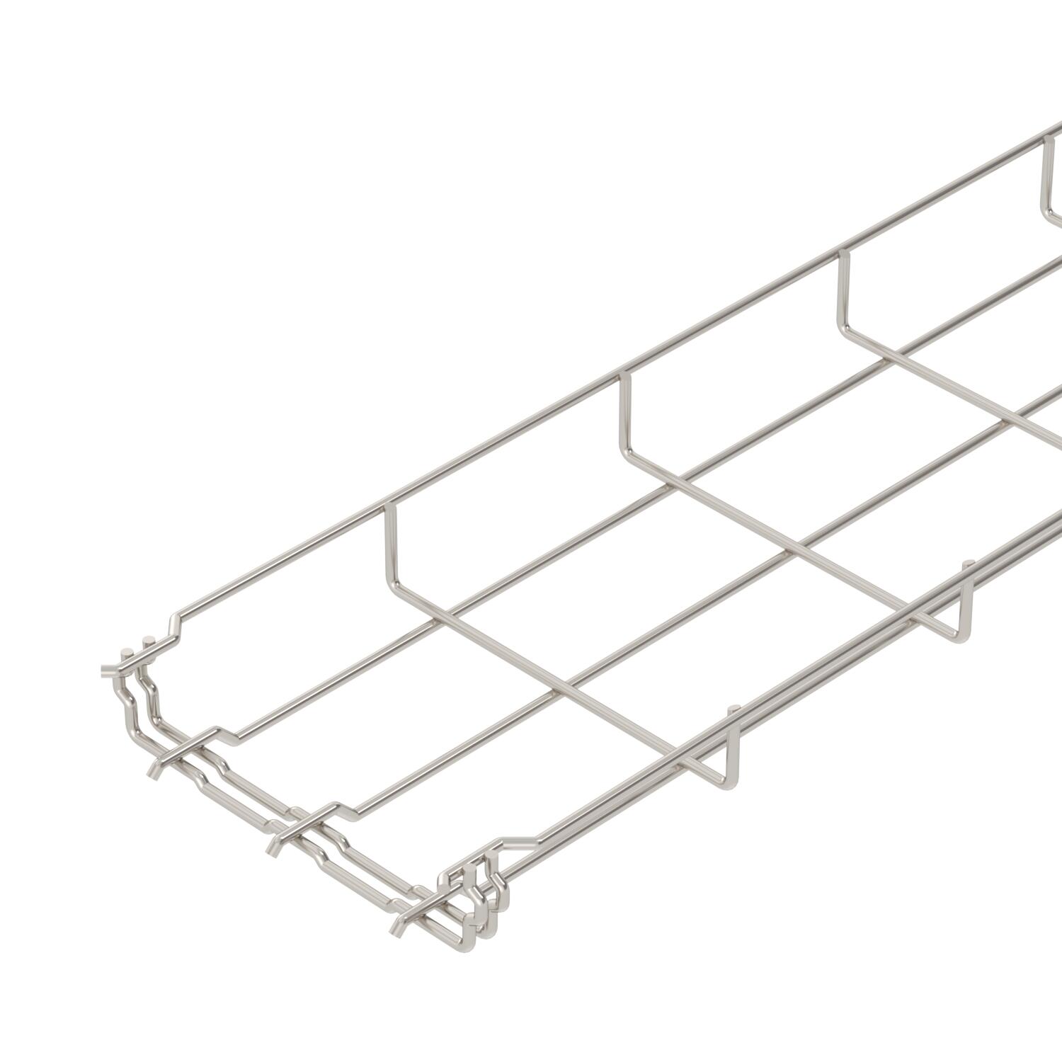 No additional connection components are required for the mesh cable tray, it is simply interlocked. The grid width is 50 x 100 mm (exception: GRM 35/50 = 20 x 100 mm).
