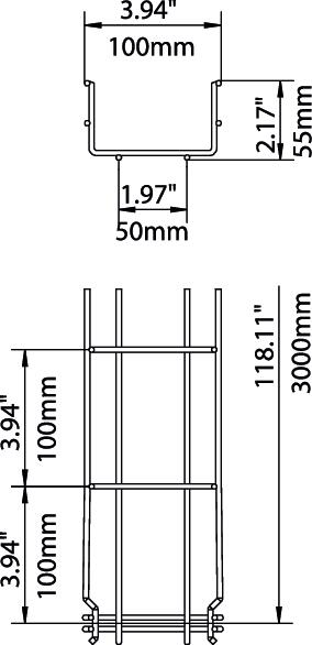 CO2 Footprint (GWP) Cradle-to-Gate 3,6441 kg CO2e / 1 Meter Colour stainless steel Connector version Integrated connector Dimension 55x100x3000 Dimension B 100 mm Dimension H 58 mm Fire protection Maintenance of electrical function of cable-specific support structure Height 55 mm Height 2,17 in Integrated partition Without Length 3000 mm Load test type according to IEC 61537 Type II Maintain electrical functions yes Material Stainless steel 1.4401 Profile shape U-shaped Rustproof steel, pickled yes Screwless connector yes Support spacing 1.0 m 0,35 kN/m Support spacing 1.5 m 0,2 kN/m Support spacing 2.0 m 0,1 kN/m Support spacing 2.5 m 0,1 kN/m Surface Bright, treated Type of connector, cable support system Click fastening Usable cross-section 40 cm² Usable cross-section 4000 mm² Wide-span version no Width 3,94 in Width 100 mm Wire diameter 3,9 mm Technical data