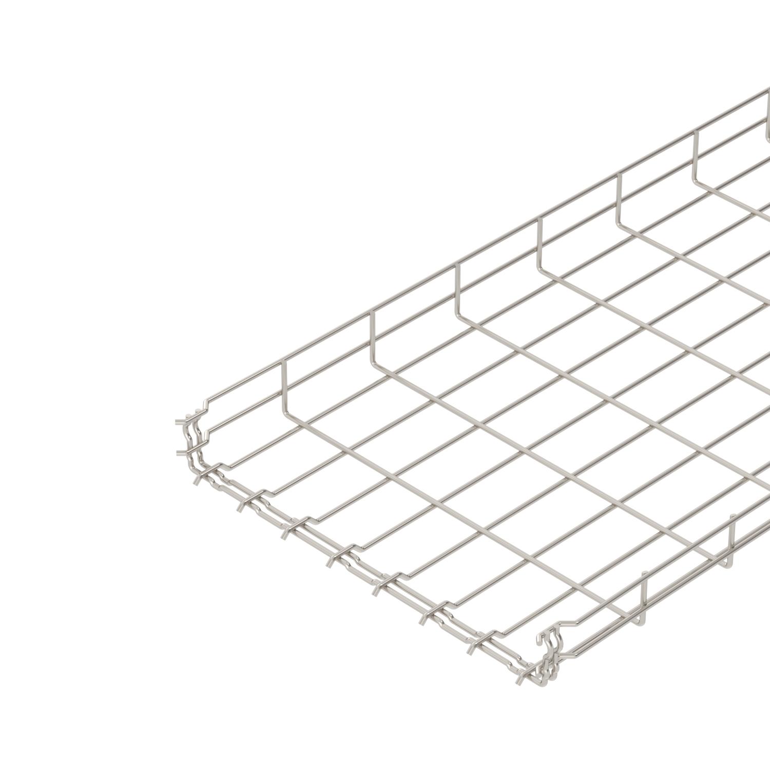 No additional connection components are required for the mesh cable tray, it is simply interlocked. The grid width is 50 x 100 mm (exception: GRM 55/50 = 20 x 100 mm).