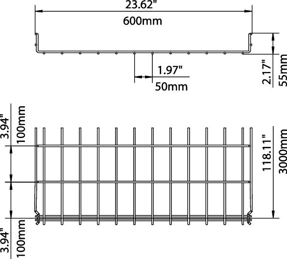 Product descriptionMesh cable tray with shaped connector of side height 55 mm.