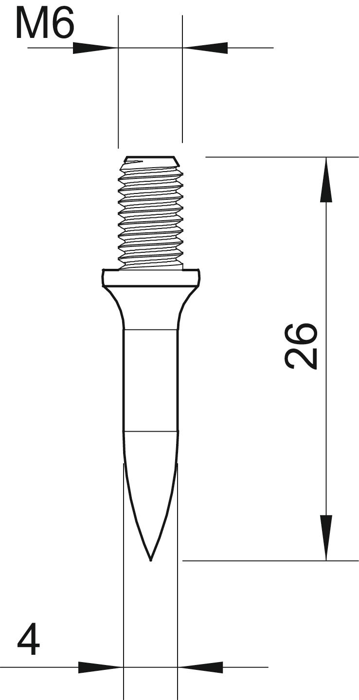 Dimension M6, L18mm Dimension d min. 4 mm Dimension G M6 mm Dimension L 26 mm Hardened yes Impact-resistant yes Length 26 mm Material Steel Shank length 18 Surface Electrogalvanized Thread length 8 mm Thread metric 6 Thread type Metric - All types