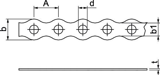 Dimension 17x0,7 Dimension 17x0,7mm Dimension A 13 mm Dimension b 17 mm Dimension d 6,8 mm Dimension t 0,7 mm Hole diameter 6,8 mm Material Steel per rolls 10 Perforation Round Surface Strip galvanized Version for Perforated - All types