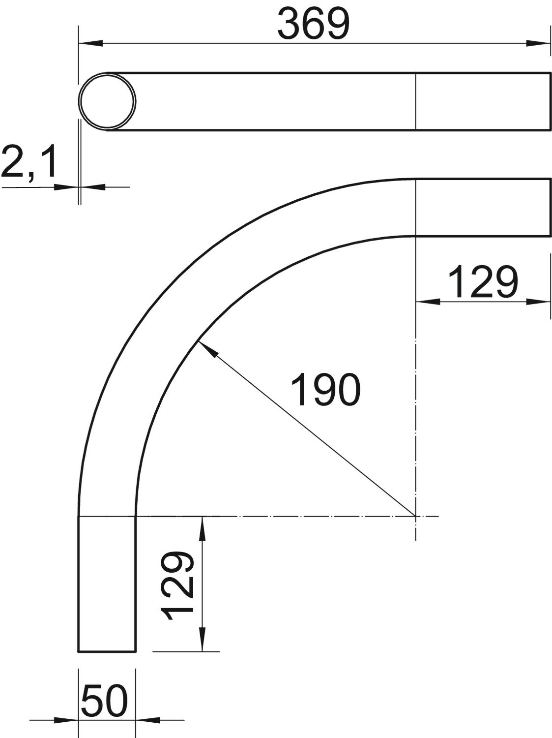 Angle of the bend 90 ° Colour Light grey; RAL 7035 Dimension Ø50mm Dimension A 129 mm Dimension D 50 mm Dimension L 369 mm Dimension m (mm) M50 Dimension R 190 mm Dimension t 2,1 mm Flexible no For nominal pipe diameter 50 mm Halogen-free yes Length 369 mm Material Polycarbonate/Acrylnitrile-butadiene-styrene Version for Connector With sleeve no - All types