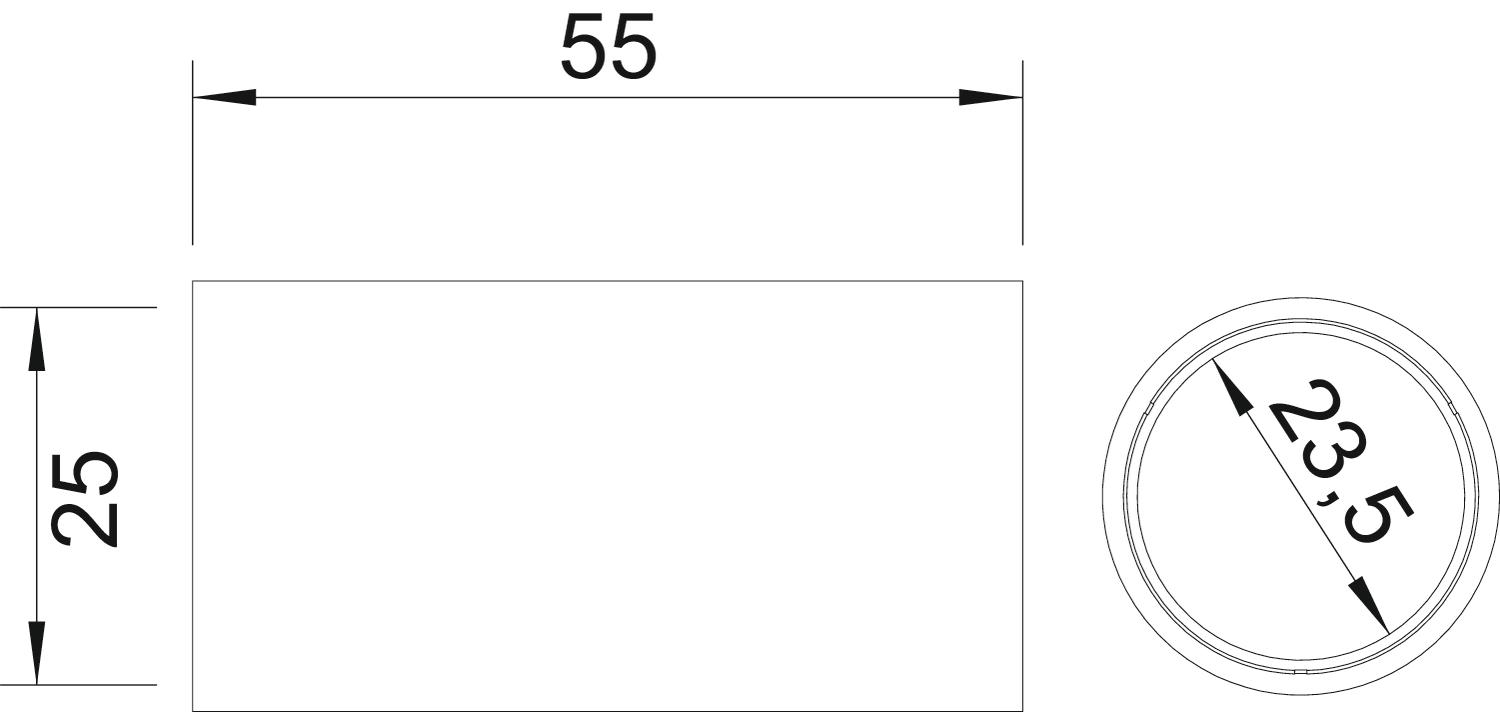 Colour Light grey; RAL 7035 Dimension Ø25mm Dimension A 23,5 mm Dimension D 25 mm Dimension L 55 mm Dimension m (mm) M25 Halogen-free yes Length 55 mm Material Polycarbonate/Acrylnitrile-butadiene-styrene Size M25 - All types