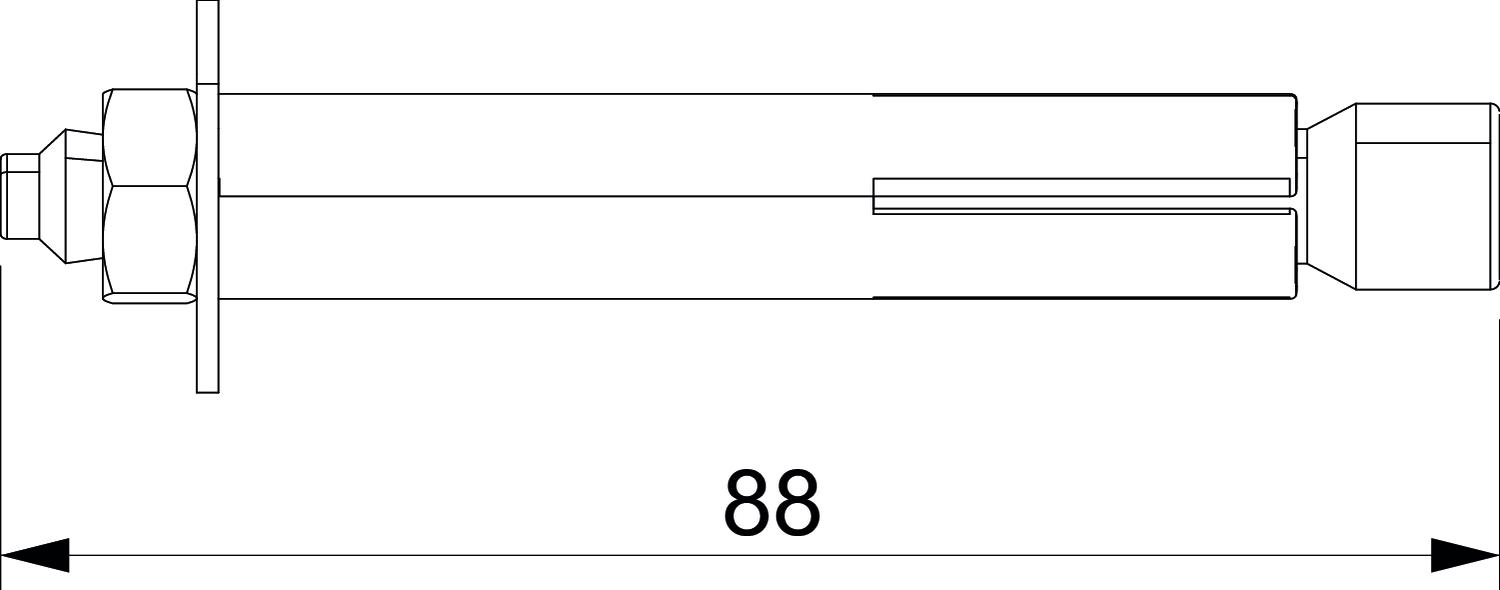 Clamping strength 10 mm Colour zinc Dimension 88x12 Dimension L 88 mm Length 88 mm Material Steel Surface Electrogalvanized Thread M8 Thread metric 8 Thread type Metric Version for For knocking in - All types