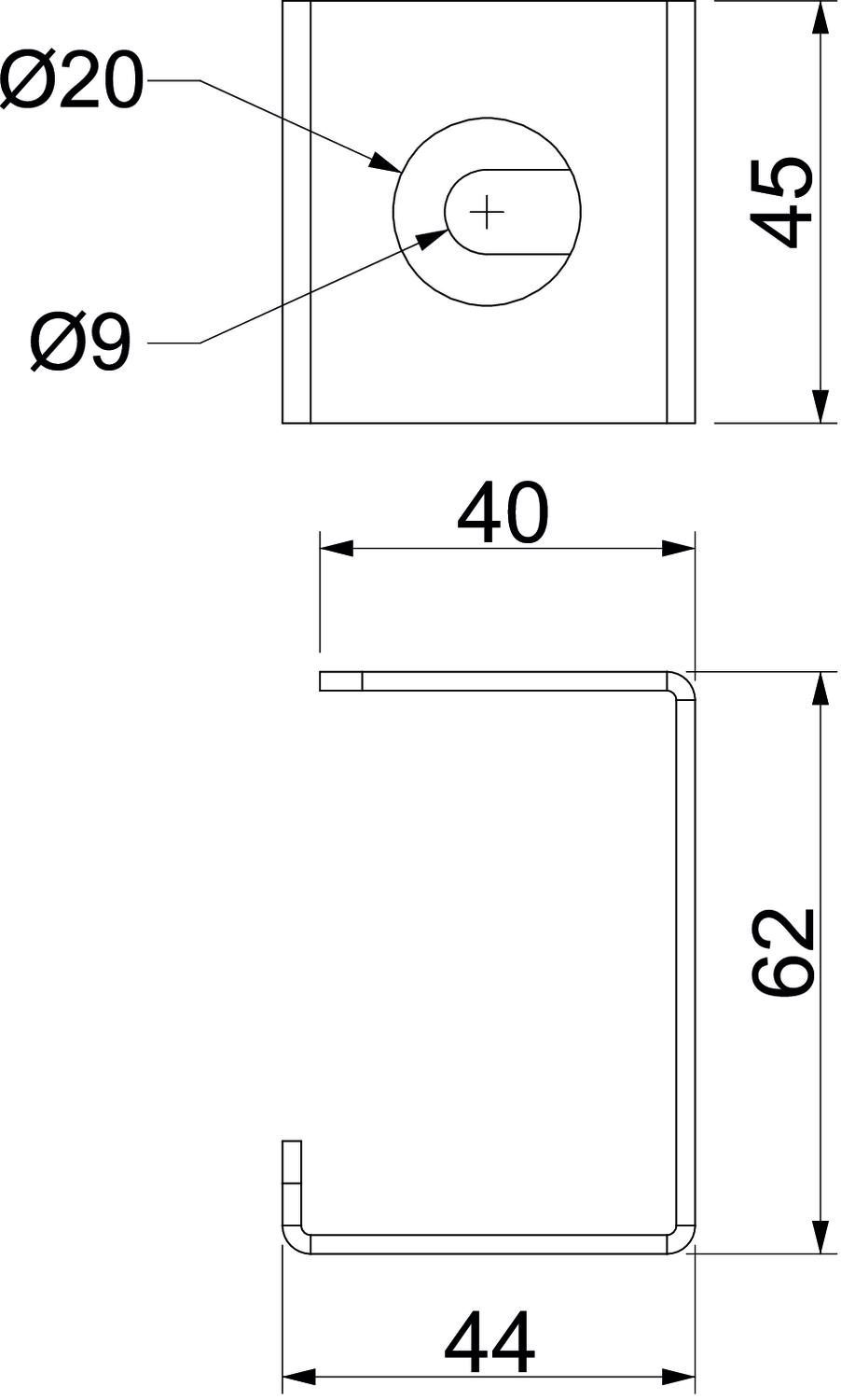Accessories yes CO2 Footprint (GWP) Cradle-to-Gate 0,3218 kg CO2e / 1 Piece Colour zinc Dimension 44x45x62 Dimension B 44 mm Dimension b 40 mm Dimension H 62 mm Dimension t 45 mm Fastening type Screw-on Material Steel Spare part no Surface Strip galvanized Type of accessory Miscellaneous - All types