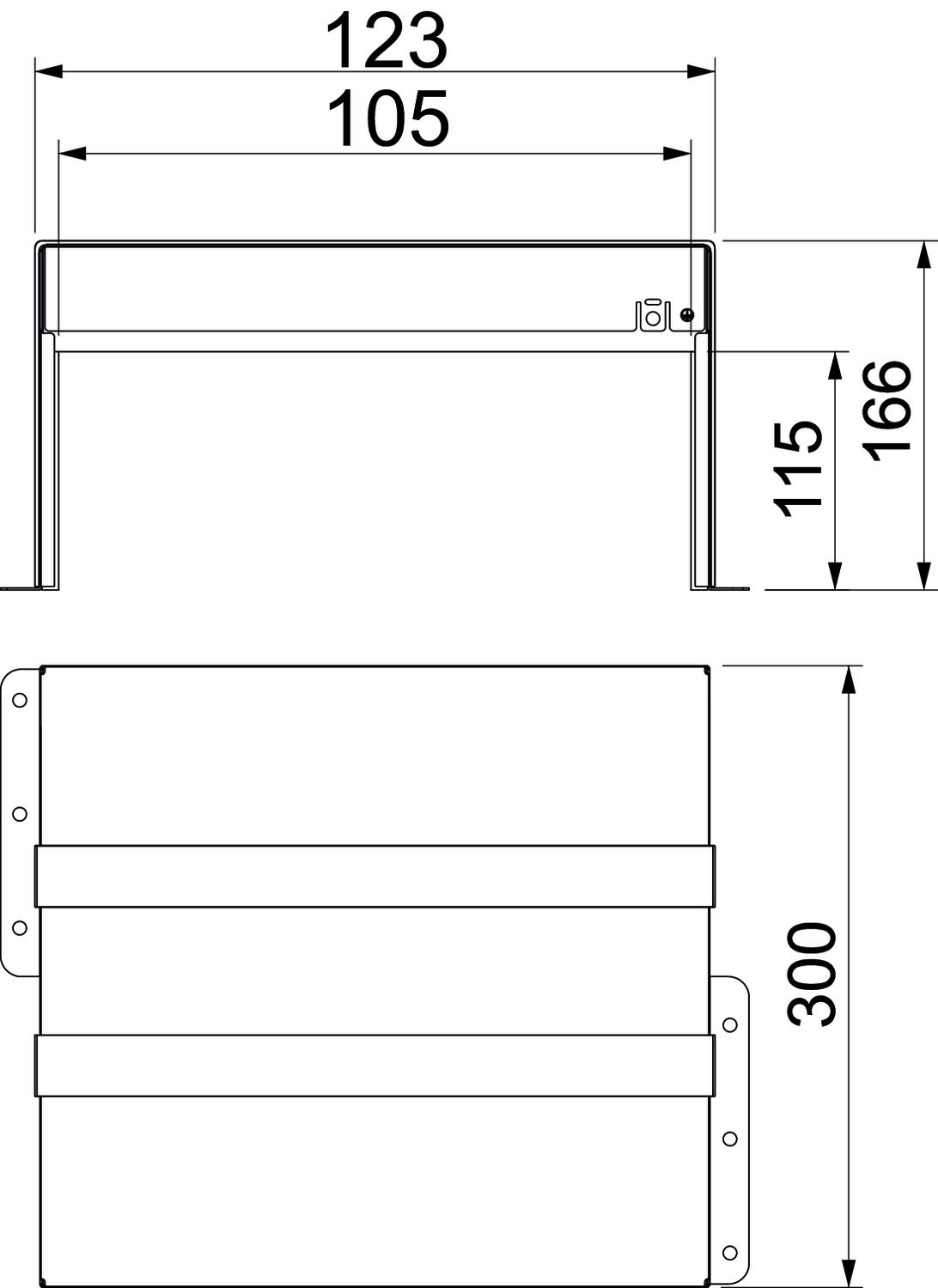 Accessories required yes Colour stainless steel Dimension 300x123x166 Dimension d 105 mm Dimension d min. 123 mm Fire protection version Box body Height 166 mm Internal height 115 mm Internal width 105 mm Length 300 mm Material Stainless steel 1.4113 Shape Rectangular Surface Bright, treated Width 123 mm - All types