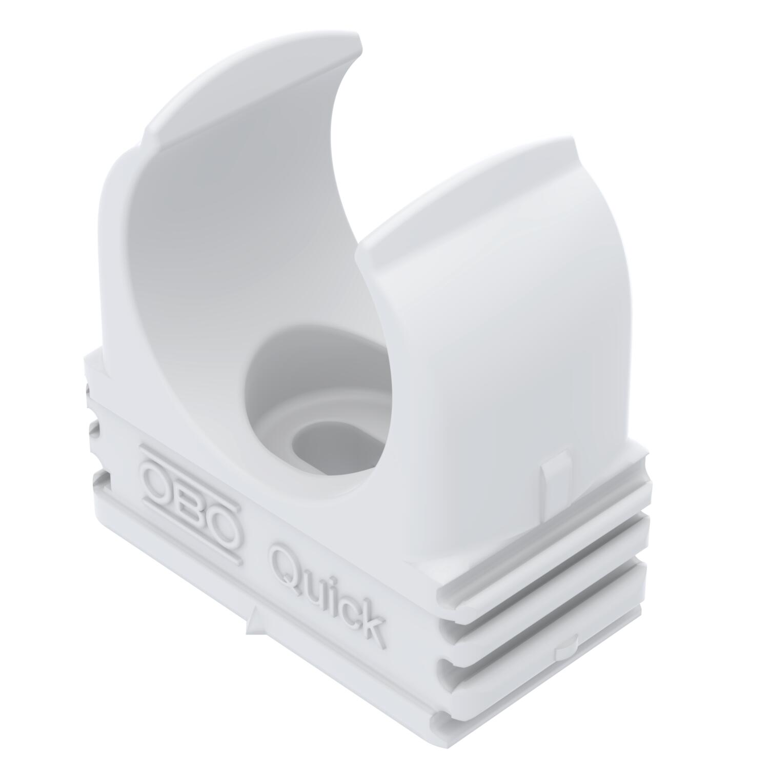 Product descriptionFlame-resistant, flush-mounted clip to accept metric steel armoured pipes and heavy-duty insulating pipes, as well as Quick-Pipe® electrical installation pipes. Universal fastening options on walls and ceilings, both in indoor and protected outdoor areas. With slot for side alignment during mounting with wood screw or knock-in anchor. Toolless pipe mounting. Can also be arranged with OBO Multi-Quick or proQuick clip. M16 - M32 size can be screwed onto M6 thread. Recommended fastening spacing 50–60 cm, for max. extraction values F at a room temperature of 20 °C, see the table.