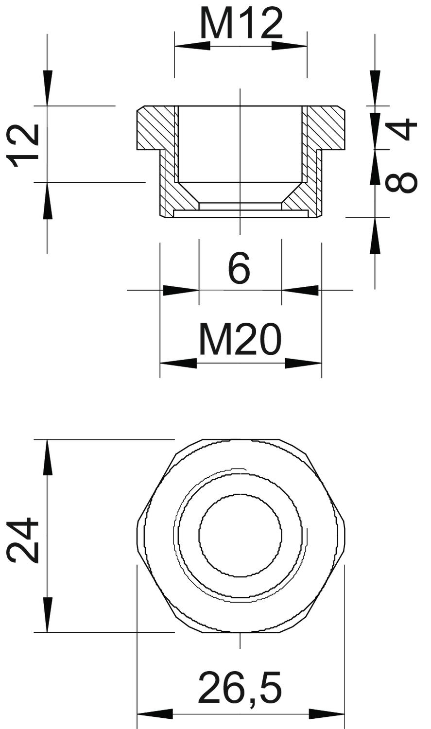 CO2 Footprint (GWP) Cradle-to-Gate 0,0157 kg CO2e / 1 Piece Colour Light grey; RAL 7035 Dimension M20-M12 Dimension E 26,5 mm Dimension L 12 mm Dimension L1 8 mm Dimension L2 4 mm Dimension L3 12 mm explosion-proof no Halogen-free yes Material Polyamide Nickel-plated no Thread dimension, metric, external 20 Thread dimension, metric, internal 12 Thread length 8 mm Thread type: External thread Metric Thread type: Internal thread Metric WAF 24 - All types