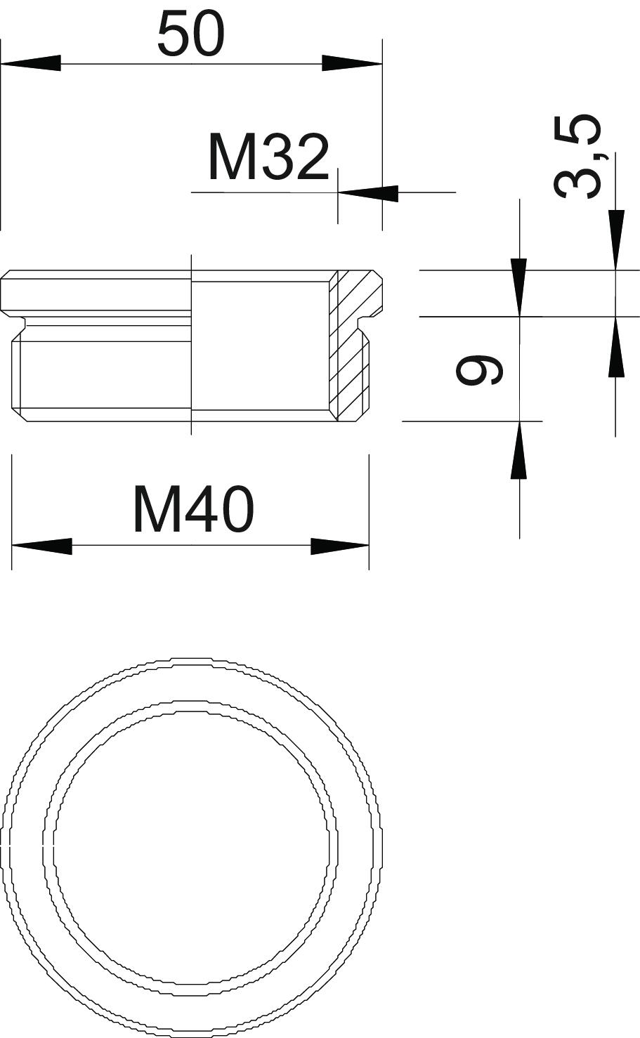CO2 Footprint (GWP) Cradle-to-Gate 0,1004 kg CO2e / 1 Piece Dimension M40-M32 Dimension D 50 mm Dimension L1 9 mm Dimension L2 3,5 mm explosion-proof no Material Brass Nickel-plated yes Surface Nickel-plated Thread dimension, metric, external 40 Thread dimension, metric, internal 32 Thread length 9 mm Thread type: External thread Metric Thread type: Internal thread Metric - All types