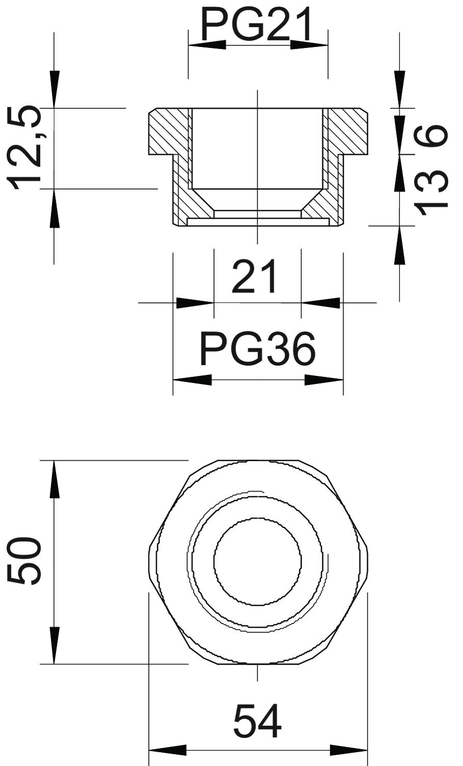 Product descriptionReduction with PG internal and external thread to DIN 40430 for mounting plastic cable glands on enclosures. Protection class IP54 without additional connecting seal. Protection class up to IP68 possible with additional connecting seal, e.g. O-ring or flat sealing ring.