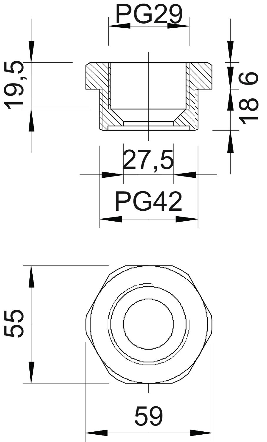 Product descriptionReduction with PG internal and external thread to DIN 40430 for mounting plastic cable glands on enclosures. Protection class IP54 without additional connecting seal. Protection class up to IP68 possible with additional connecting seal, e.g. O-ring or flat sealing ring.