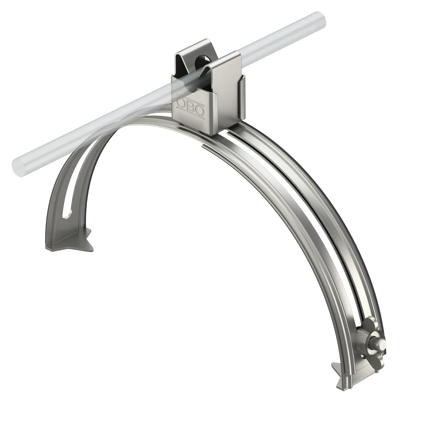 Application Ridge Clamping range D, max. 260 mm Clamping range D, min. 185 mm CO2 Footprint (GWP) Cradle-to-Gate 0,6183 kg CO2e / 1 Piece Conductor diameter, max. 8 Conductor diameter, min. 8 Conductor fastening type With clip Dimension 8mm Fit Rd 8 mm Material Stainless steel 1.4301 Mounting height 20 mm Mounting type Tensionable - All types