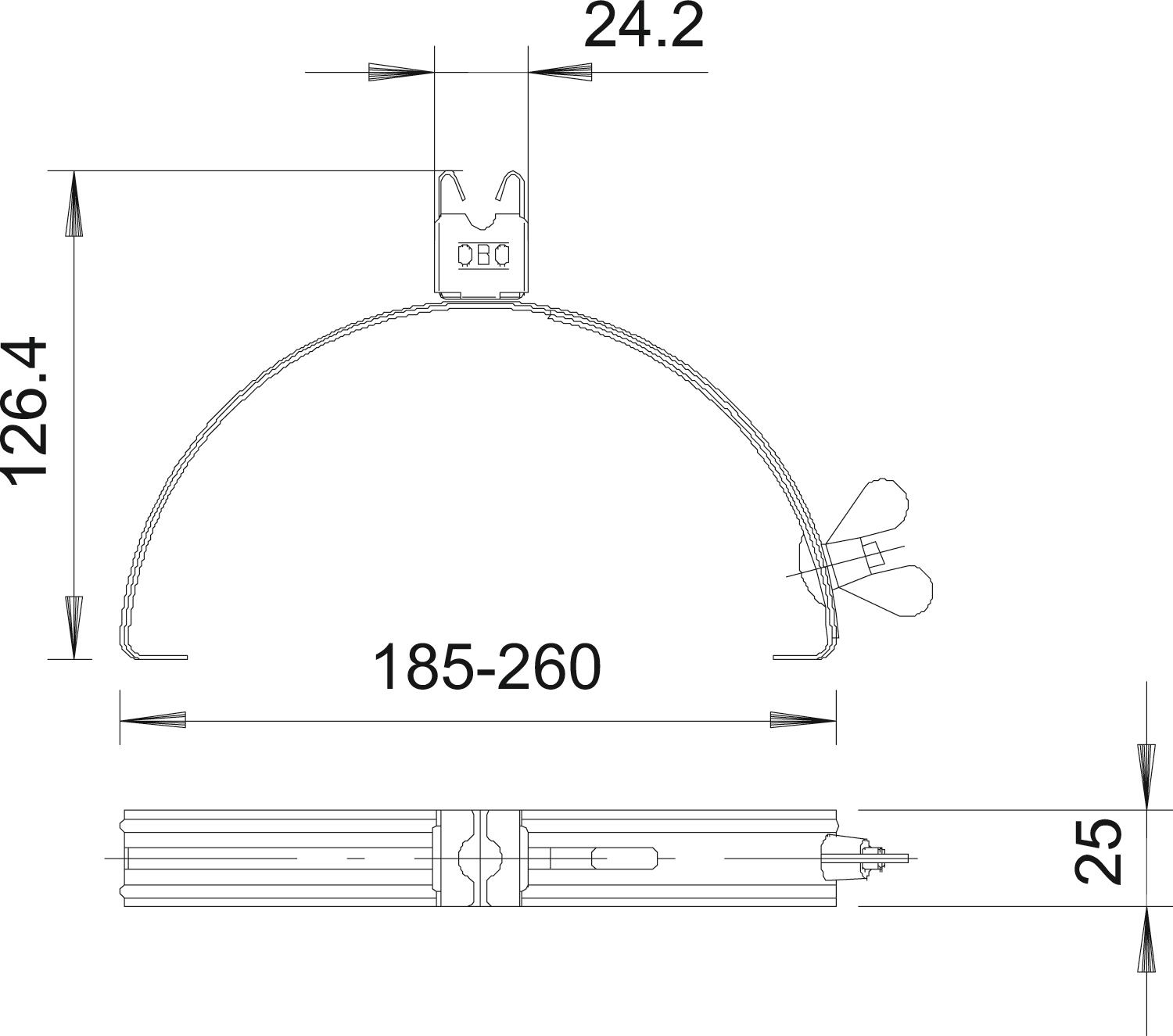 Application Ridge Clamping range D, max. 260 mm Clamping range D, min. 185 mm CO2 Footprint (GWP) Cradle-to-Gate 0,3935 kg CO2e / 1 Piece Conductor diameter, max. 8 Conductor diameter, min. 8 Conductor fastening type With clip Dimension 8mm Fit Rd 8 mm Material Copper Mounting height 20 mm Mounting type Tensionable - All types