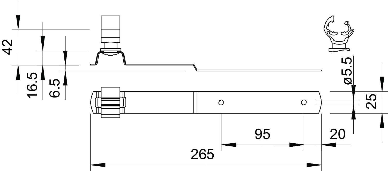 Application Roof surface CO2 Footprint (GWP) Cradle-to-Gate 0,351 kg CO2e / 1 Piece Conductor diameter, max. 10 Conductor diameter, min. 8 Conductor fastening type With clamp clip Dimension 8mm Fit Rd 8-10 mm Length 265 mm Material Stainless steel 1.4301 Mounting height 42 mm Mounting type Screw-on - All types