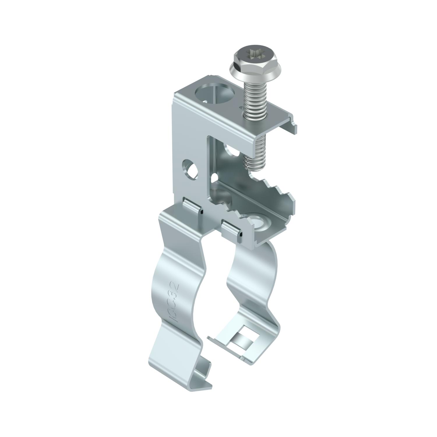 Product descriptionScrew-in support clamp for mounting pipes and cables. Closed pipe seat at bottom. Fastening on steel girders by screwing on.