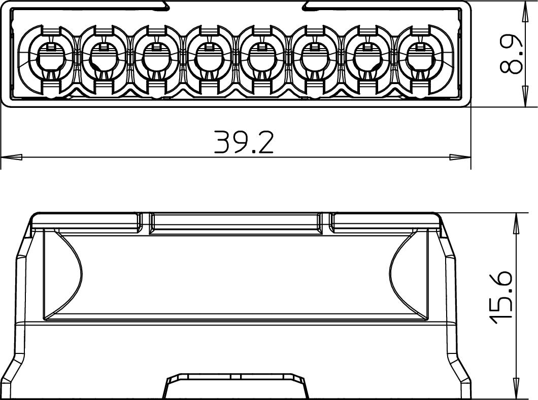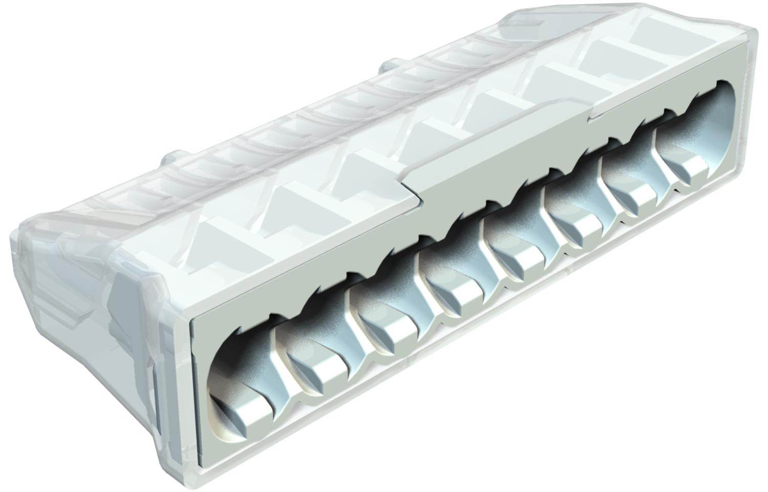Colour Light grey; RAL 7035 Connectable conductor cross-section, multi-wire, max. 2,5 mm² Connectable conductor cross-section, multi-wire, min. 1,5 mm² Connectable conductor cross-section, single-wire, max. 2,5 mm² Connectable conductor cross-section, single-wire, min. 0,5 mm² Cross-section 8 x 0.5 mm² to 2.5 mm² single-wire conductor 8 x 1.5 mm² to 2.5 mm² rigid, multi-wire conductor mm² Dimension 8x2,5mm² Flame-resistant Acc. to VDE 0471/DIN 695 Part 2-1, test temperature 850°C Height 8,9 mm Length 39,2 mm Material Polyamide No. of terminals 8 Nominal cross-section, max. 2,5 mm² Nominal cross-section, min. 0,5 mm² Nominal current 24 A Nominal voltage 450 V Permitted temperature range, max. 90 °C Permitted temperature range, min. -5 °C Pole number 8 Suitable for flexible conductors no Suitable for multi-wire conductors yes Suitable for solid conductors no Width 15,6 mm With actuating levers no - All types