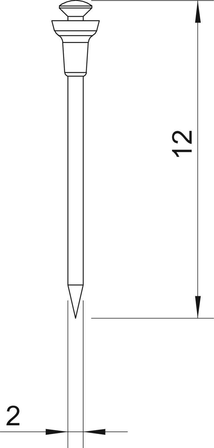 Dimension 2x12mm Dimension d 2 mm Dimension L 12 mm Hardened yes Head shape Rounded head Length 12 mm Material Steel Screw nail version no Shank diameter 2 mm Surface Bright Version for Siko - All types