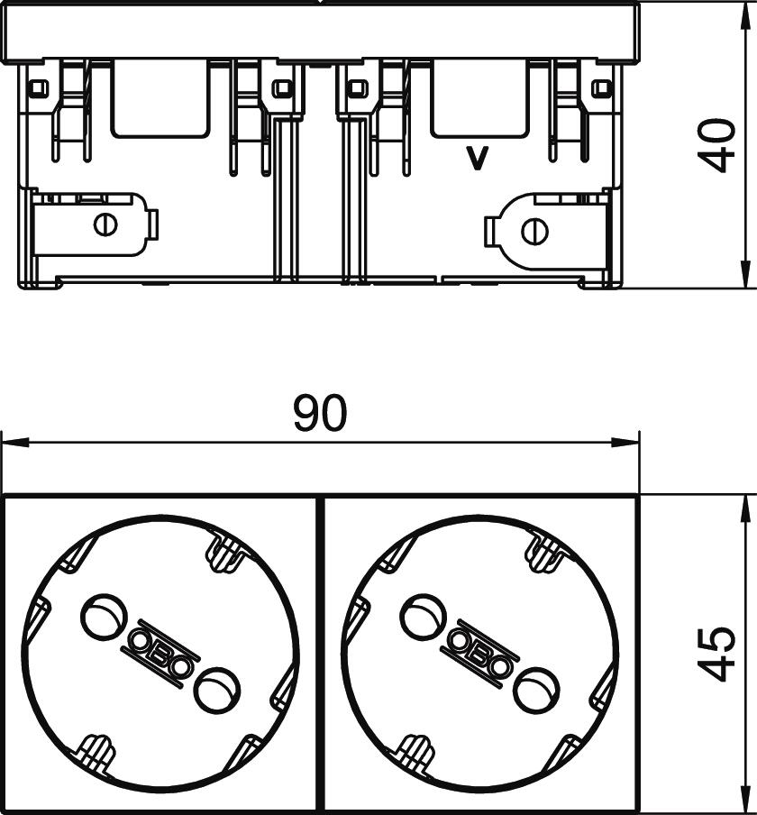 Closable no CO2 Footprint (GWP) Cradle-to-Gate 0,2664 kg CO2e / 1 Piece Coding no Colour Black-grey; RAL 7021 Connection type Screwless terminal Cover Central plate Depth 40 mm Dimension 250V, 10/16A Ejection mechanism no Error current protection no Fastening type Lock For more difficult conditions (according to VDE) no Halogen-free yes Height 45 mm Hinged cover no increased touch protection yes Insulated installation no Labelling panel no Material Polycarbonate Mounting type Device installation duct Nominal current 16 A Nominal voltage 250 V Number of poles 2 Number of units 2 Operating temperature, max. 40 °C Operating temperature, min. -5 °C Printed label/coding Without printing Protection rating Other Rotated central insert yes Socket angle 33° Socket version Protective contact Special power supply Without special power supply Surface version Matt Surge protection no Transparent no Version for double 33° Warning light no Width 90 mm With fine-wire fuse no With functional lighting no With on/off switch no With orientation lighting no - All types