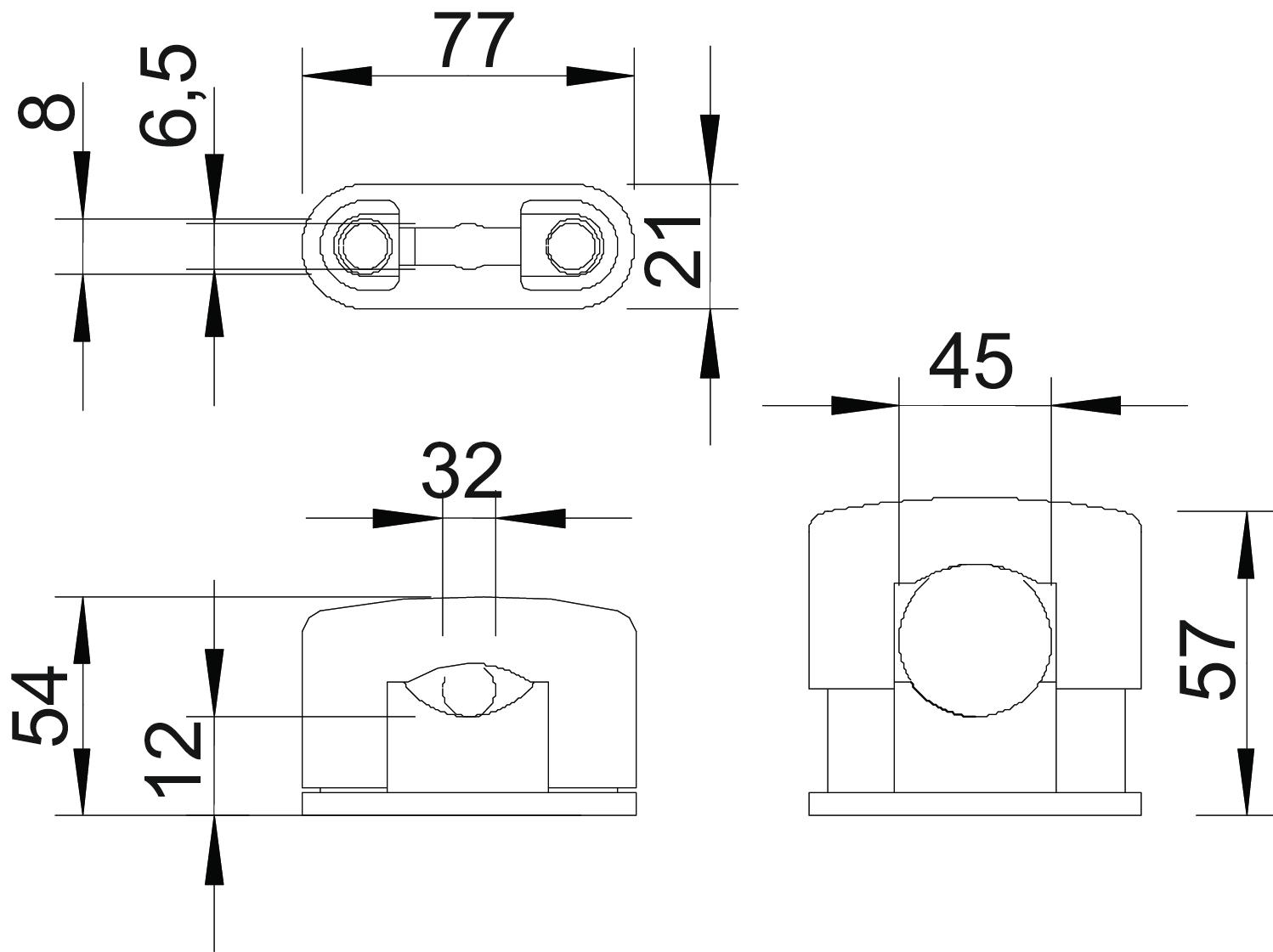 Bolt M8 x 40 Clamping range D, max. 45 mm Clamping range D, min. 32 mm CO2 Footprint (GWP) Cradle-to-Gate 0,1608 kg CO2e / 1 Piece Colour Light grey; RAL 7035 Dimension 32-45mm Dimension b 21 mm Dimension b1 6,5 mm Dimension d max. 45 mm Dimension d min. 32 mm Dimension H1 12 mm Dimension H2 54 mm Dimension H3 57 mm Dimension L 77 mm Fastening type Screw hole Halogen-free yes Material Duroplast, Aminoplast Typ 131.5 Number of cables/pipes 1 Plastic-covered no Suitable in fire protection area yes UV-resistant no Version for Closed - All types