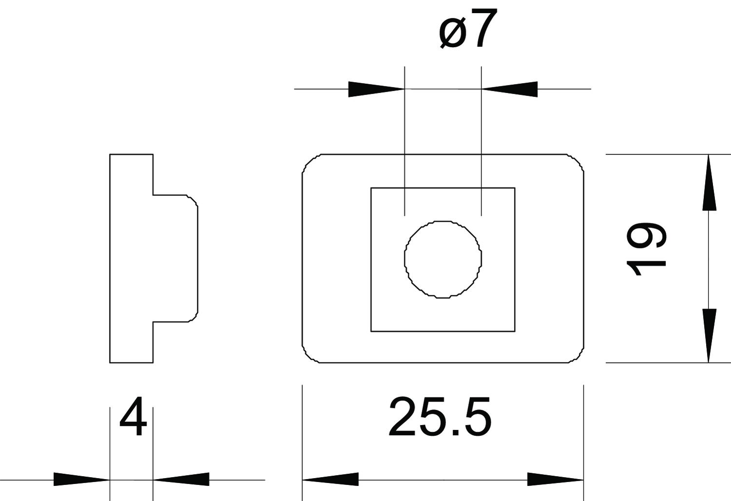 Accessories yes CO2 Footprint (GWP) Cradle-to-Gate 0,0076 kg CO2e / 1 Piece Colour Light grey; RAL 7035 Dimension 25,5x19x4mm Dimension h 4 mm Faceted no Halogen-free yes Hardened no Inner diameter 7 mm Material Polystyrene Material thickness 4 mm Spare part no - All types