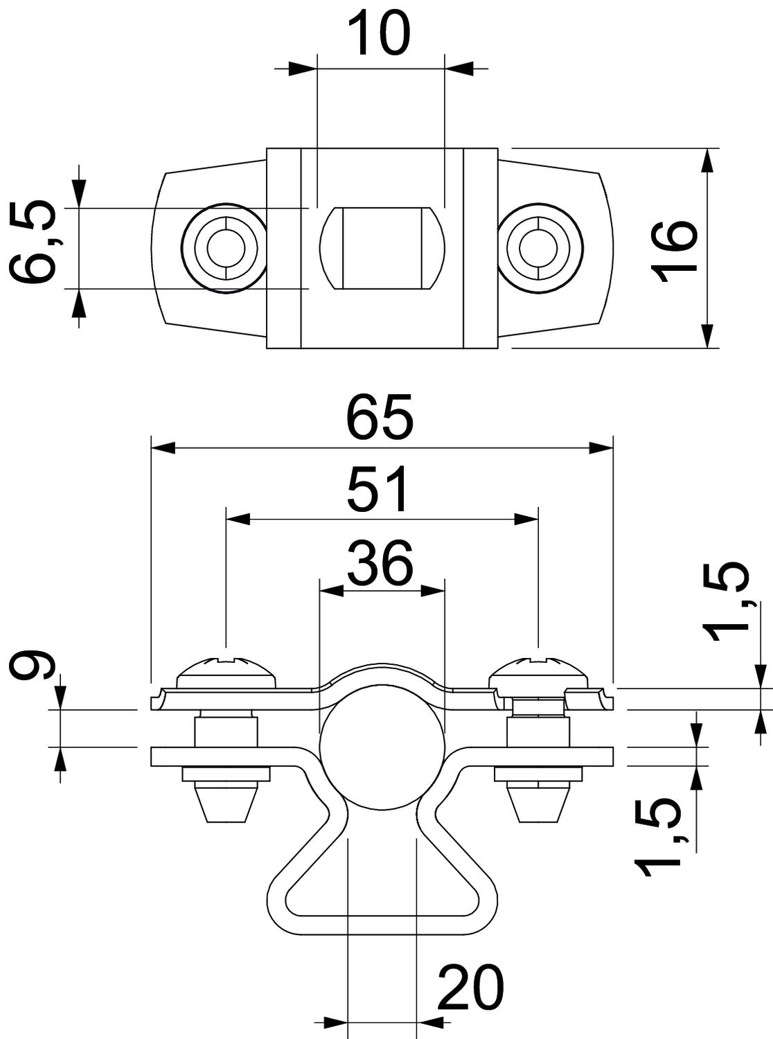 Clamping range D, max. 36 mm Clamping range D, min. 30 mm CO2 Footprint (GWP) Cradle-to-Gate 0,2552 kg CO2e / 1 Piece Dimension 30-36mm Dimension A 65 mm Dimension b 16 mm Dimension B 51 mm Dimension d max. 36 mm Dimension d min. 30 mm Dimension L 10 mm Dimension s 20 mm Dimension t1 (mm) 1,5 Dimension t2 (mm) 1,5 Dimension x 9 mm Distance to the wall yes For diameter 30 - 36 Halogen-free yes Maintain electrical functions yes Material Stainless steel 1.4301 Material thickness 1,5 mm Number of cables/pipes 1 Plastic-covered no UV-resistant yes Version for Closed - All types