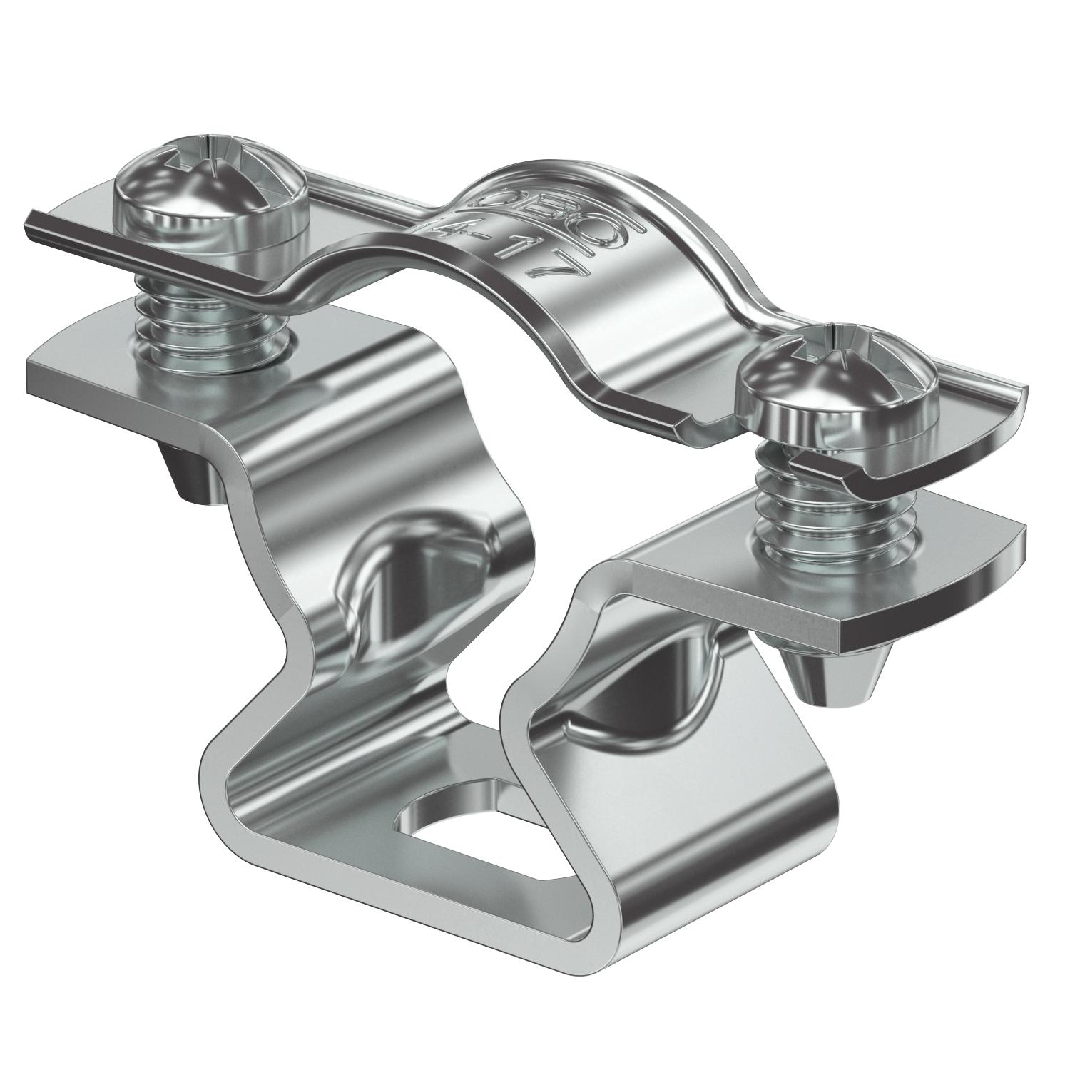 Clamping range D, max. 17 mm Clamping range D, min. 14 mm CO2 Footprint (GWP) Cradle-to-Gate 0,1524 kg CO2e / 1 Piece Dimension 14-17mm Dimension A 44 mm Dimension b 14 mm Dimension B 32 mm Dimension D 17 mm Dimension d max. 17 mm Dimension d min. 14 mm Dimension L 10 mm Dimension s 9,5 mm Dimension t1 (mm) 1,25 Dimension t2 (mm) 1,5 Dimension x 4,5 mm Distance to the wall yes Fastening type Screw hole For diameter 14 - 17 Halogen-free yes Material Aluminium Material thickness 1,5 mm Number of cables/pipes 1 Plastic-covered no UV-resistant yes Version for Closed - All types